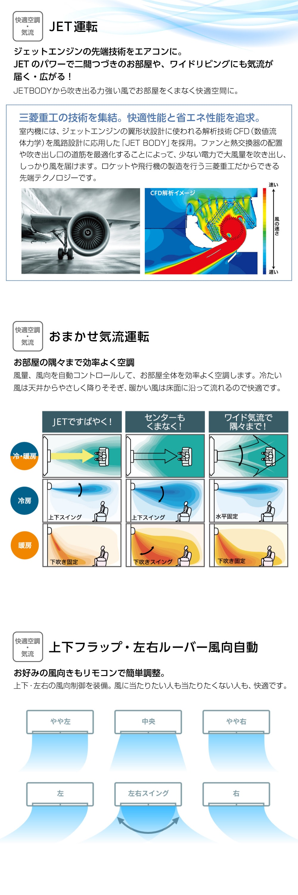 JETBODYから吹き出る力強い風でお部屋をくまなく快適空間に。