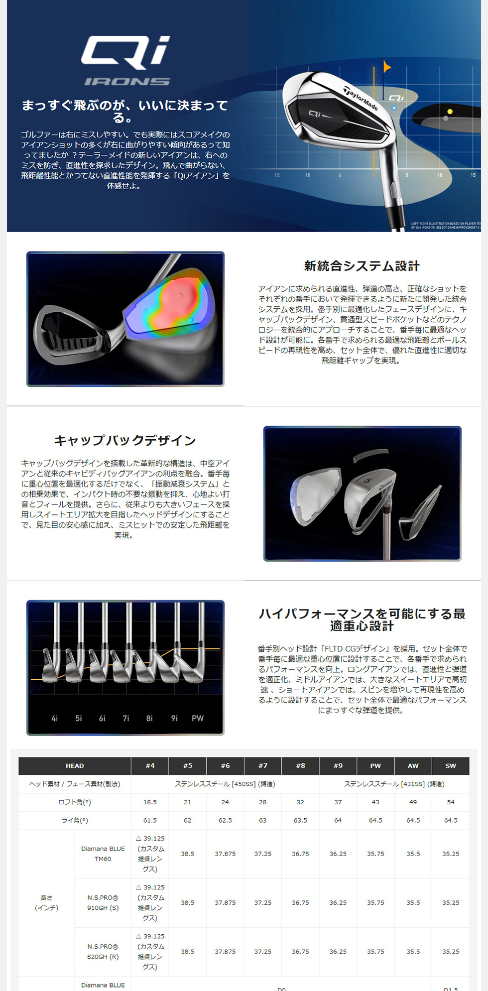 【日本正規品】 テーラーメイド Qi アイアンセット 5本組(#6-PW) N.S.PRO 820GH スチールシャフト R