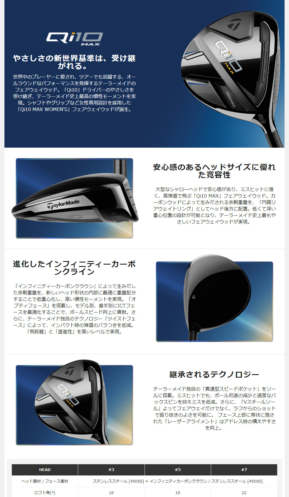世界中のプレーヤーに愛され、ツアーでも活躍する、オールラウンドなパフォーマンスを発揮するテーラーメイドのフェアウェイウッド。「Qi10」ドライバーのやさしさを受け継ぎ、テーラーメイド史上最高の慣性モーメントを実現。シャフトやグリップなど女性専用設計を採用した「Qi10 MAX WOMEN'S」フェアウェイウッドが誕生。