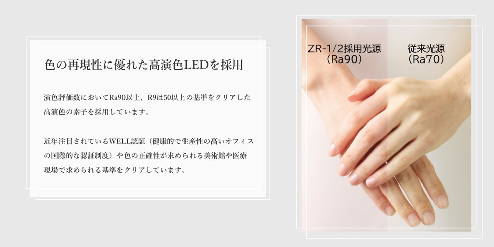 高演色LED(Ra90以上、R9は50以上)を採用。