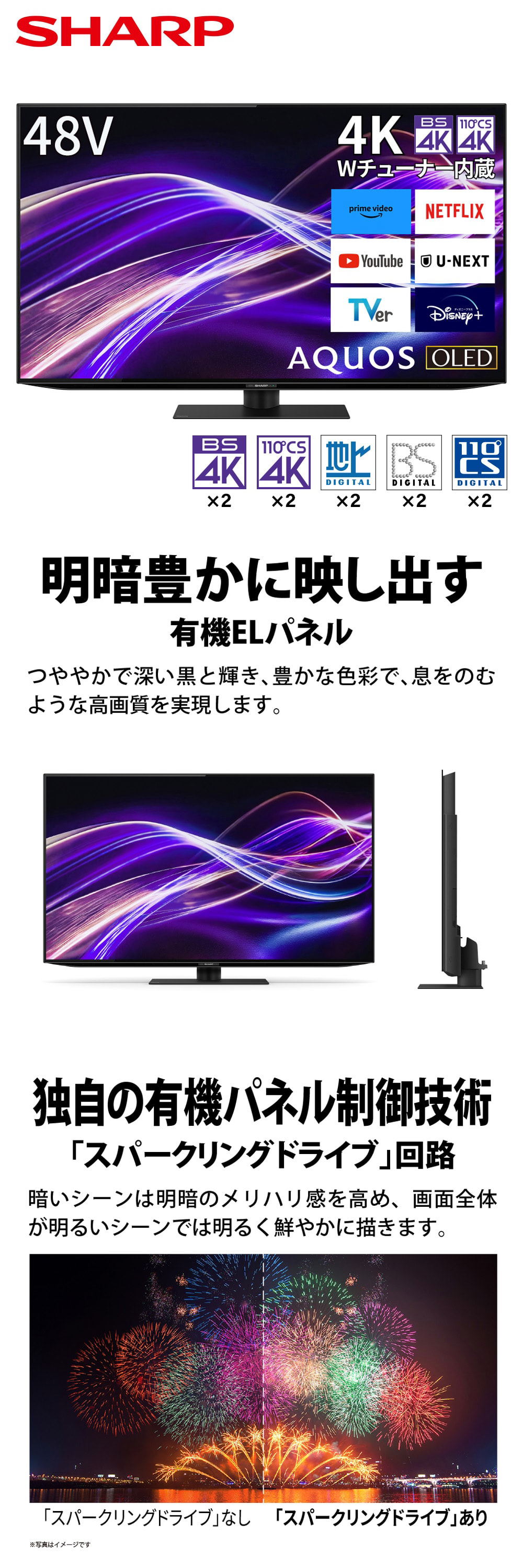 SHARP 4T-C48GQ2 AQUOS OLED [48V型 地上・BS・110度CSデジタル 4Kチューナー内蔵 有機ELテレビ]