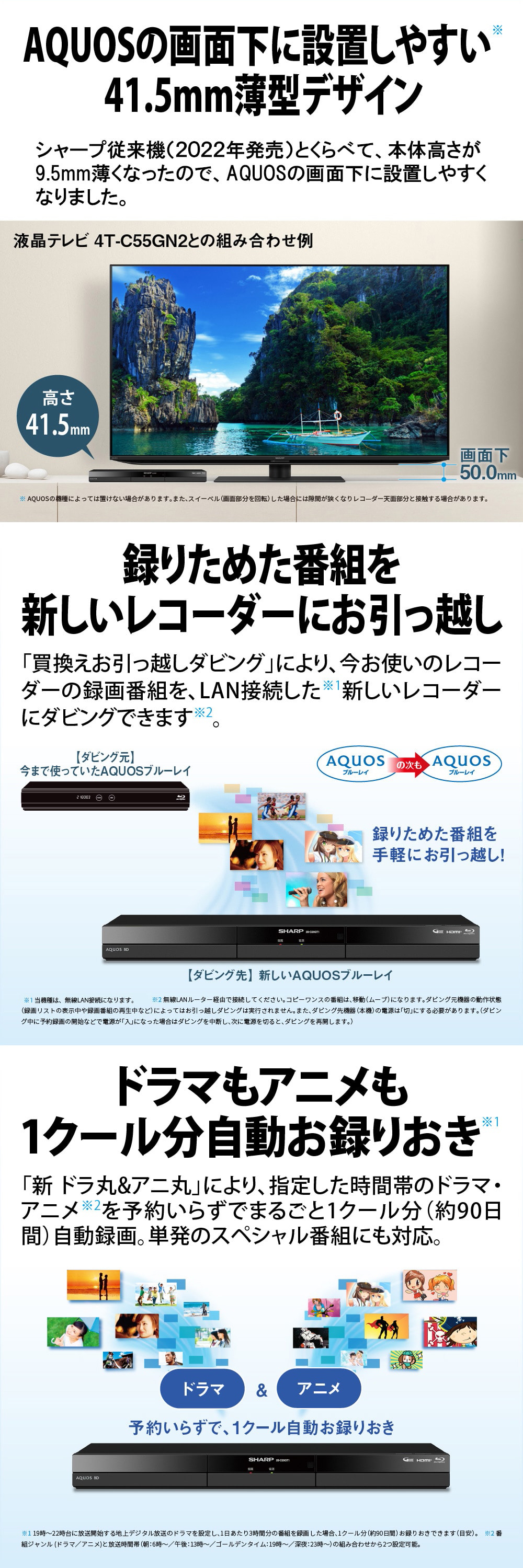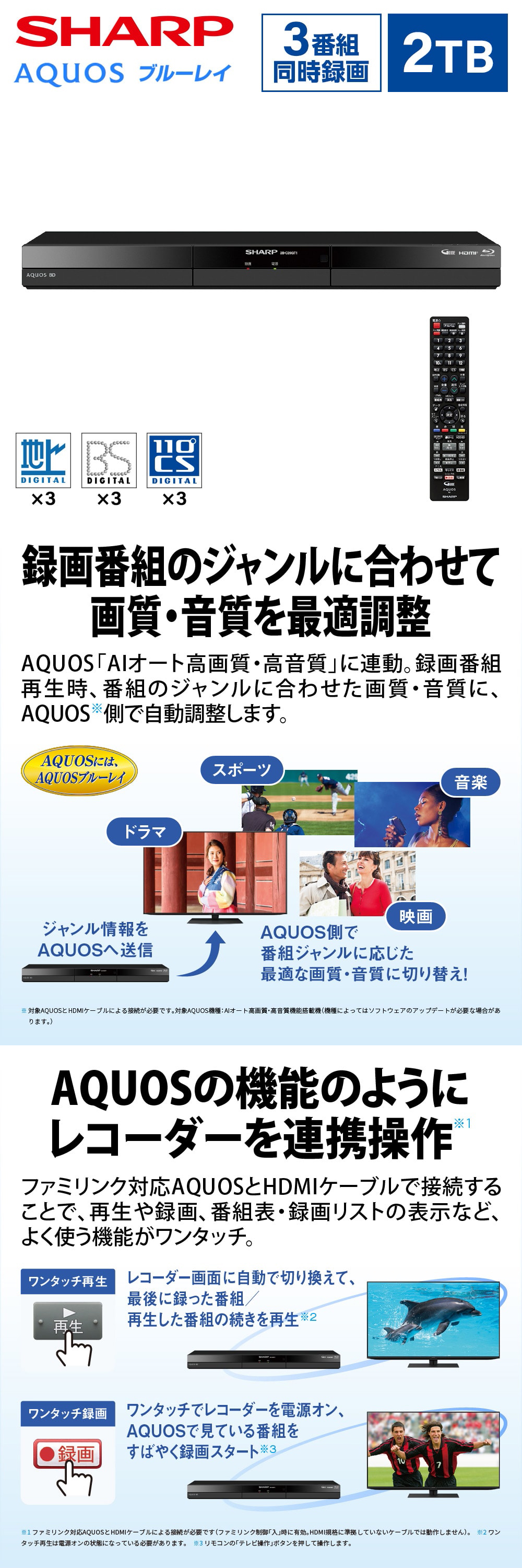 AQUOSとのセットで、キレイ!快適!スマート設置!3番組同時録画タイプ。