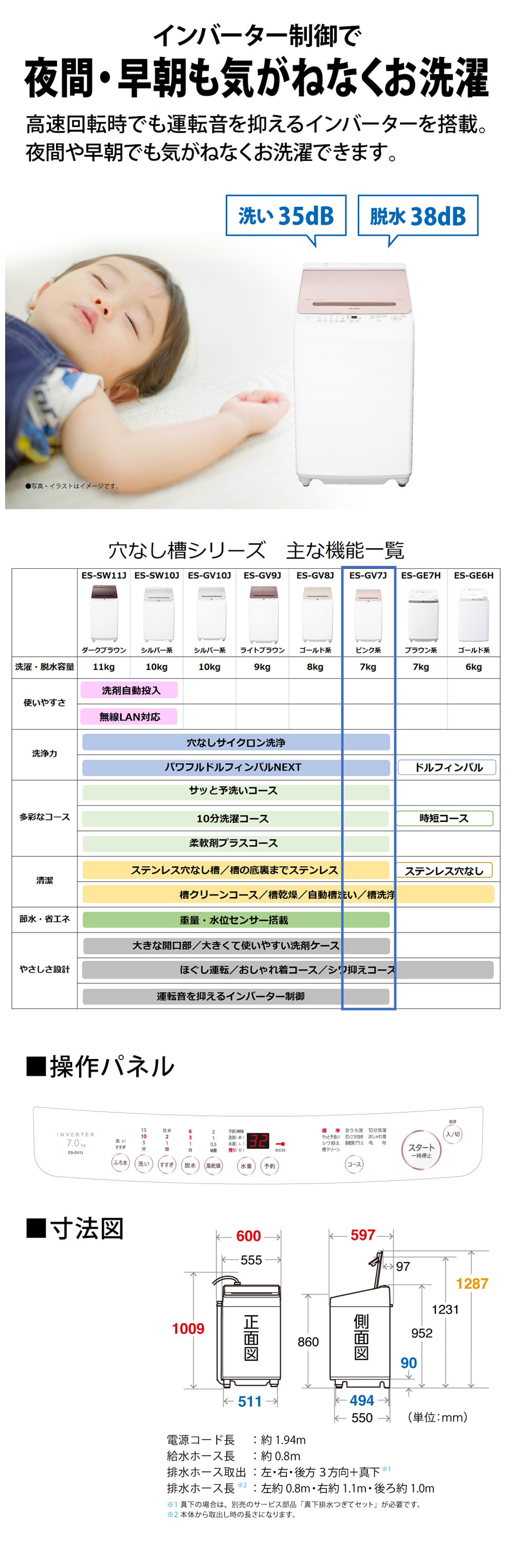 | 騒音レベル(洗濯時/脱水時/乾燥時) | 35/38/- dB |