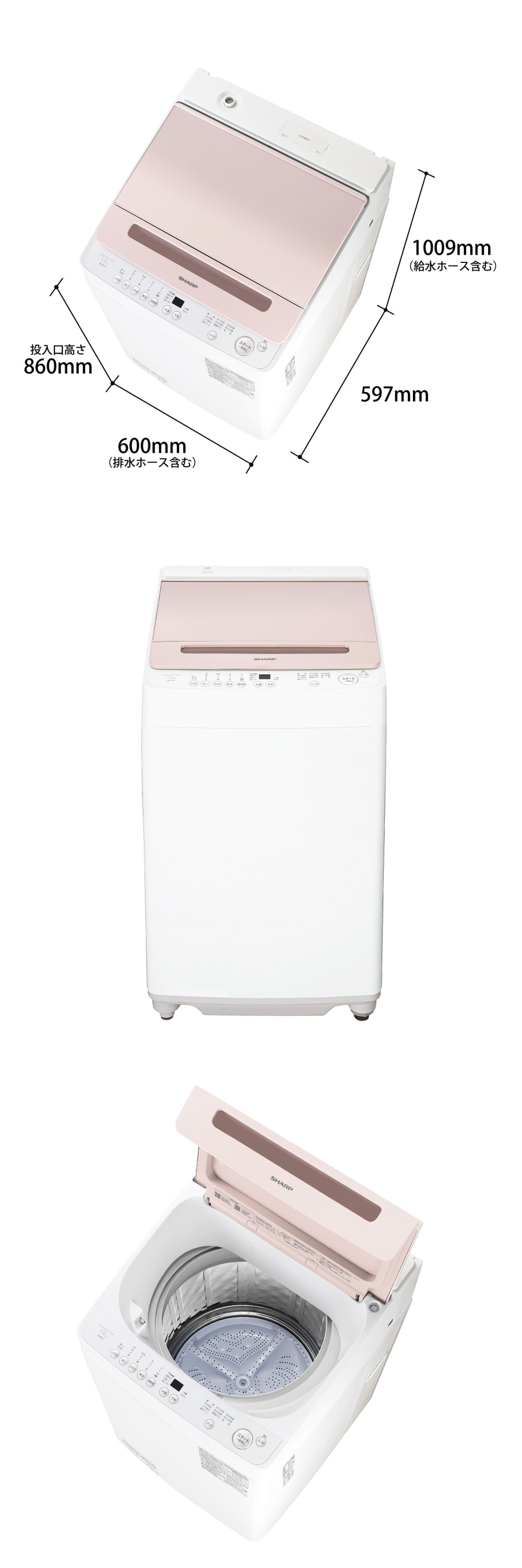 SHARP ES-GV7J-P ピンク系 穴なし槽 [全自動洗濯機 (7.0kg)]