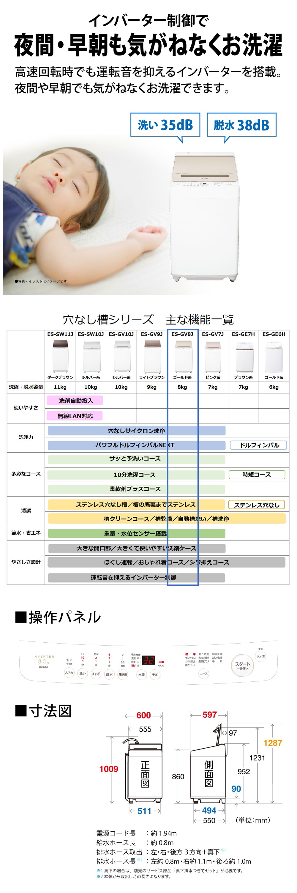 | 騒音レベル(洗濯時/脱水時/乾燥時) | 35/38/- dB |