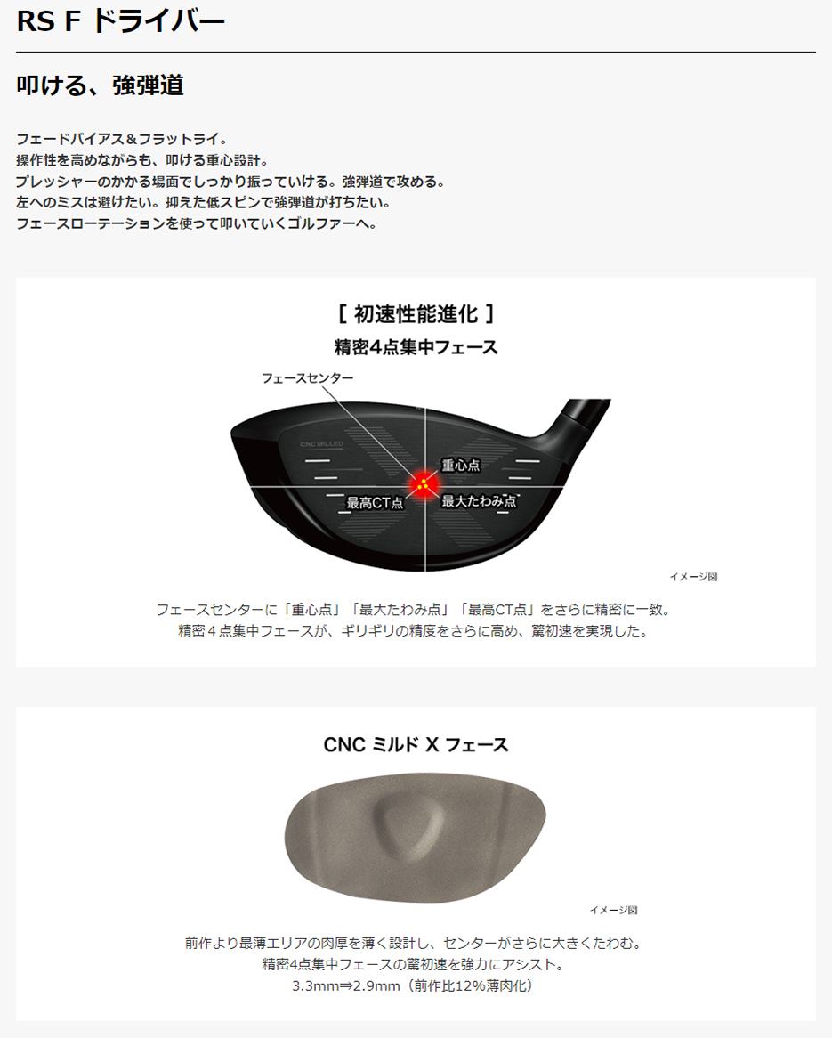 インパクトエネルギーを最大化するヘッドが精密4点集中フェースを後押しする。