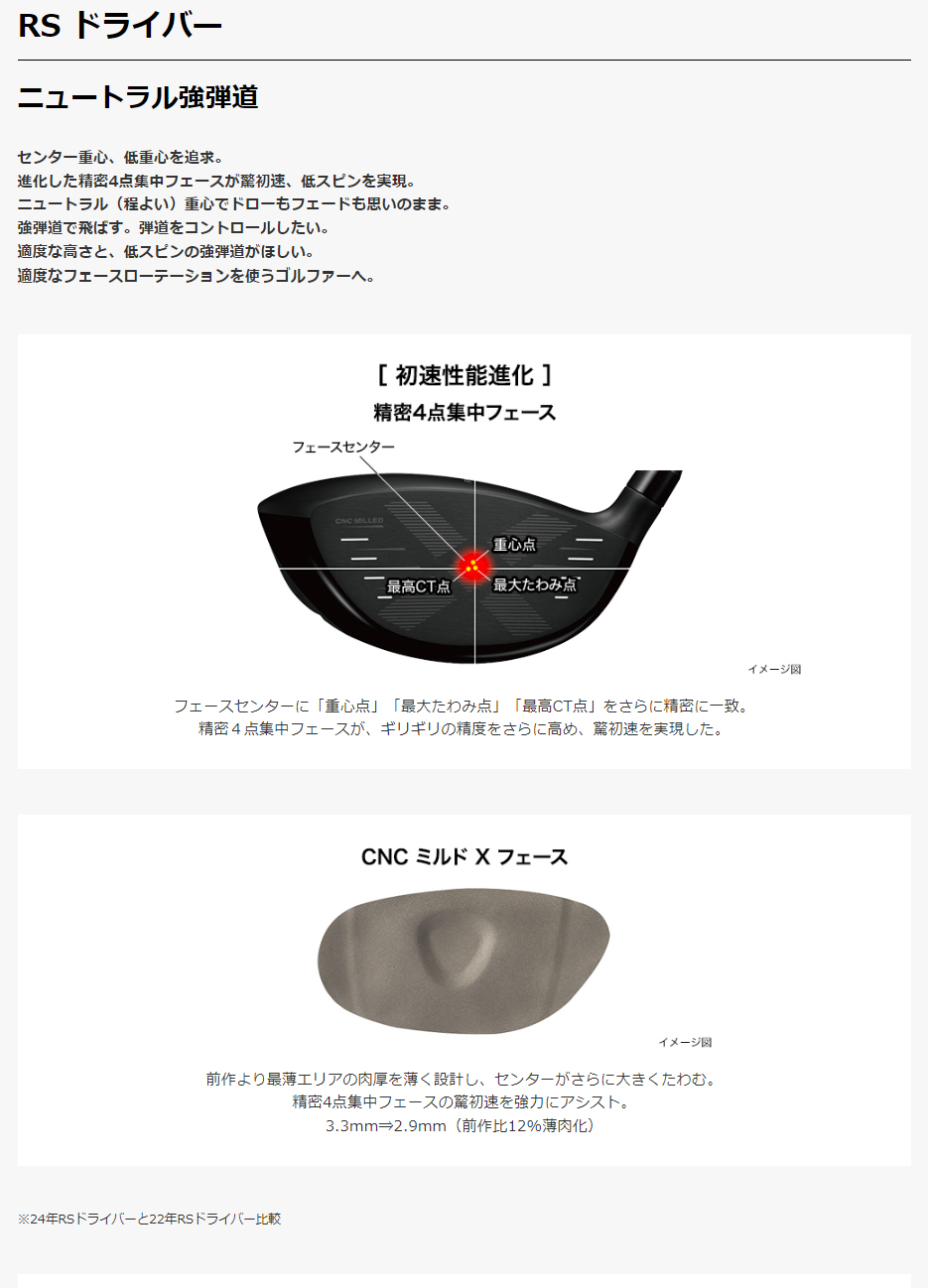 センター重心、低重心を追求。進化した精密4点集中フェースが驚初速、低スピンを実現。
