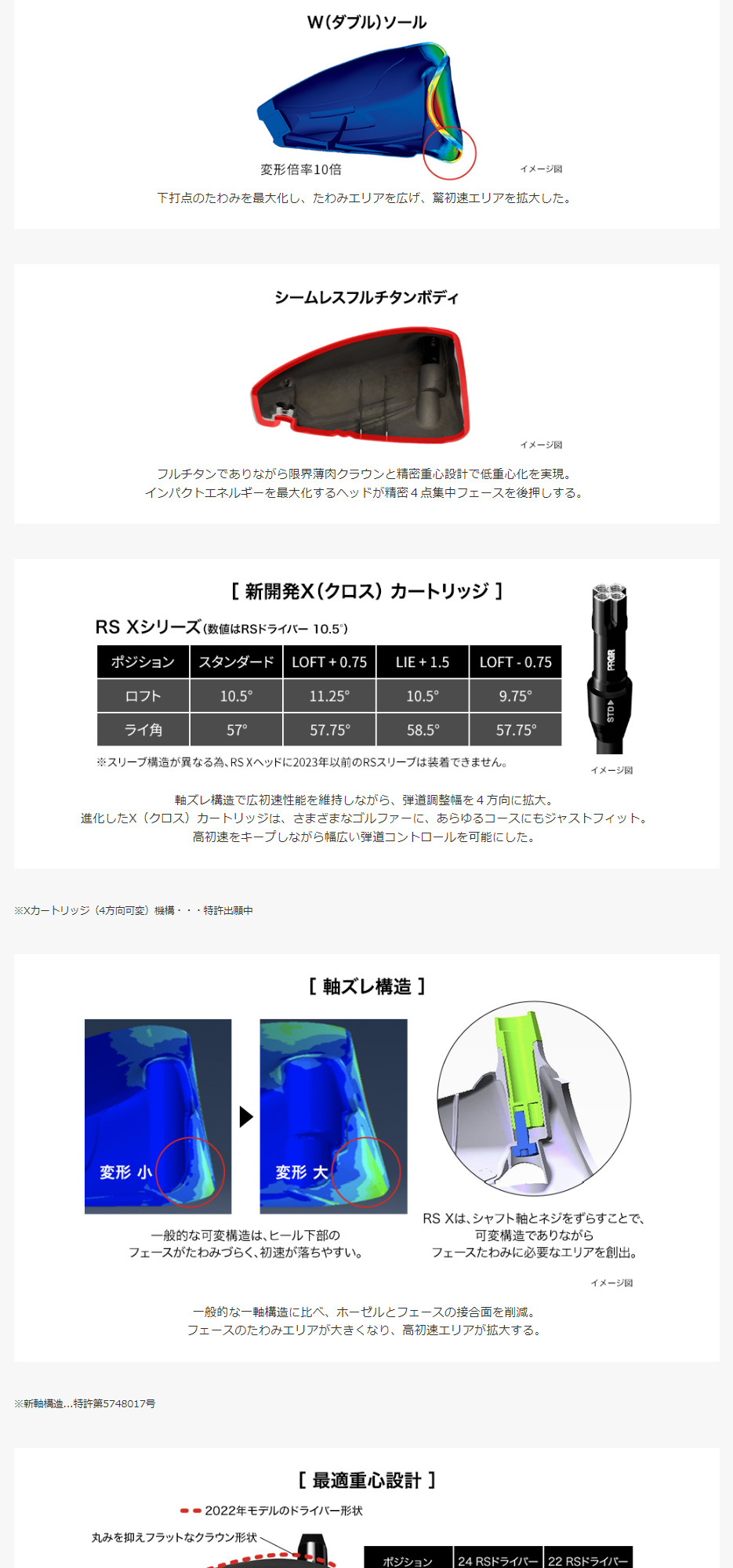 | ヘッド構造 | ボディ:チタン Ti-8Al-1V-1Mo(真空精密鋳造) フェース:チタン Ti-6Al-4V(CNC加工) |