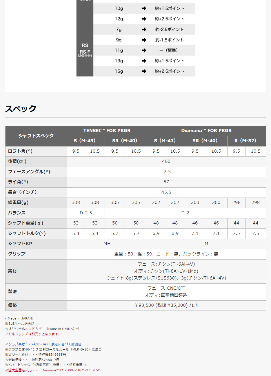 【日本正規品】 PRGR RS ドライバー 2024年モデル TENSEI FOR PRGRオリジナルシャフト 10.5 S(M-43)