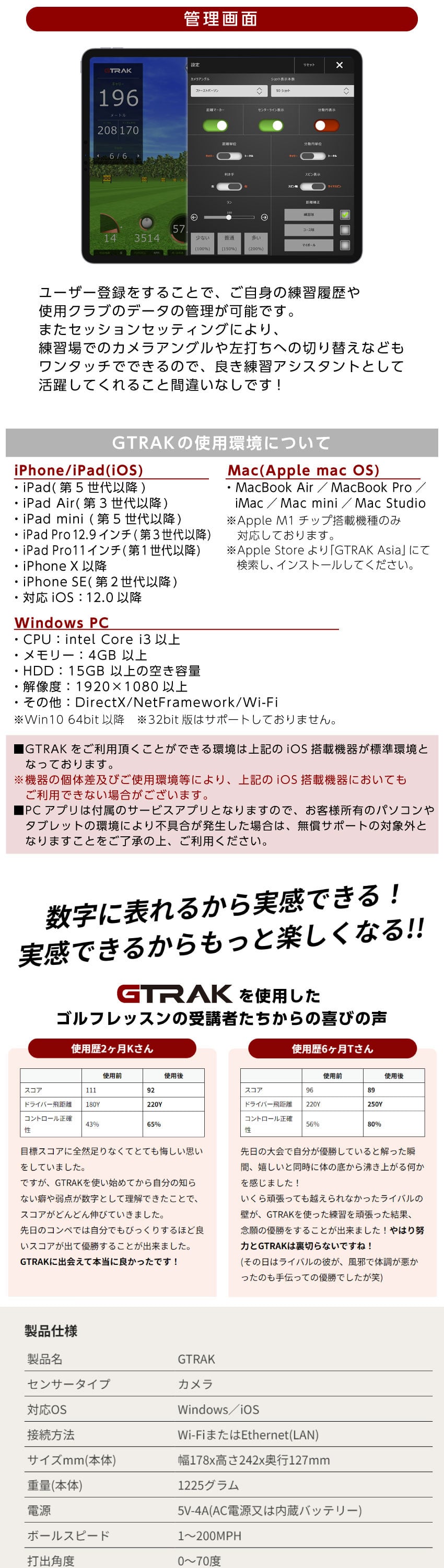 ★ 本体購入のセットとして弾道計測アプリGTRAKが付属