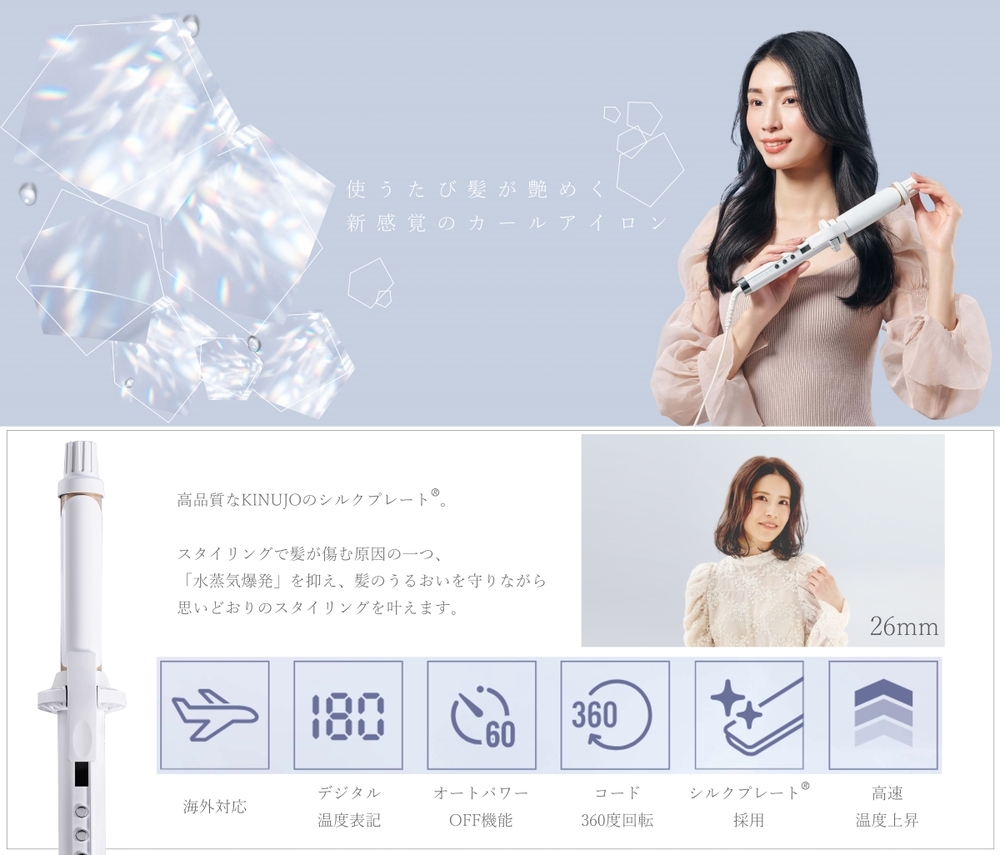 ほとんどのヘアアイロンで起こる水蒸気爆発もKINUJOではシルクプレートを使っているので、200℃でも水蒸気爆発が起こらず、優れた保湿力で髪の水分を守ります。