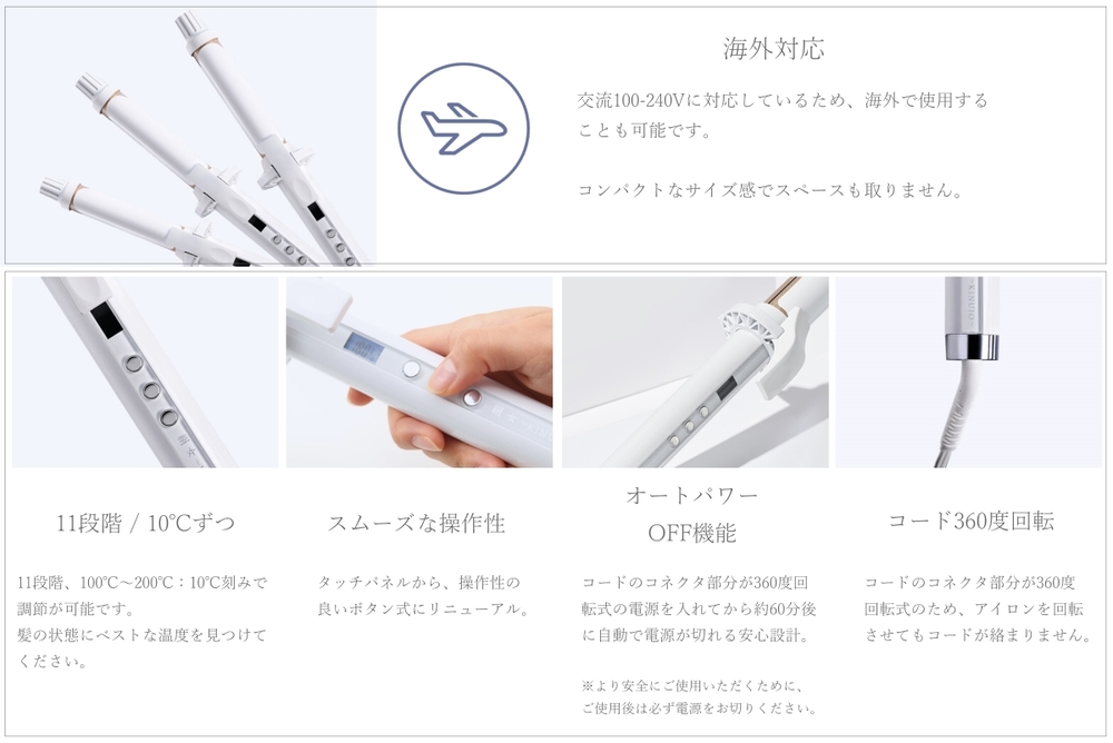 | アイロン温度(温度調節段階) | 100~200℃(10℃ずつ11段階で調整可能) |