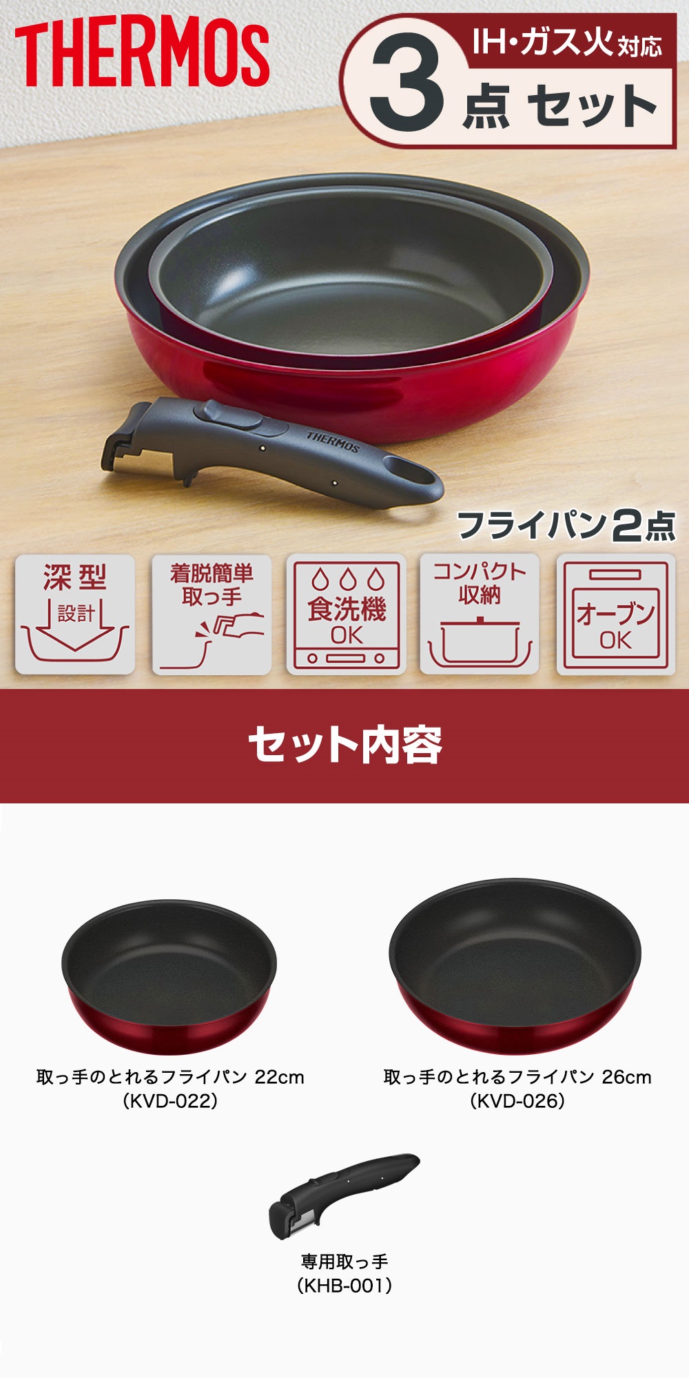 THERMOS KSD-3A-DR 取っ手のとれるフライパン3点セットDA