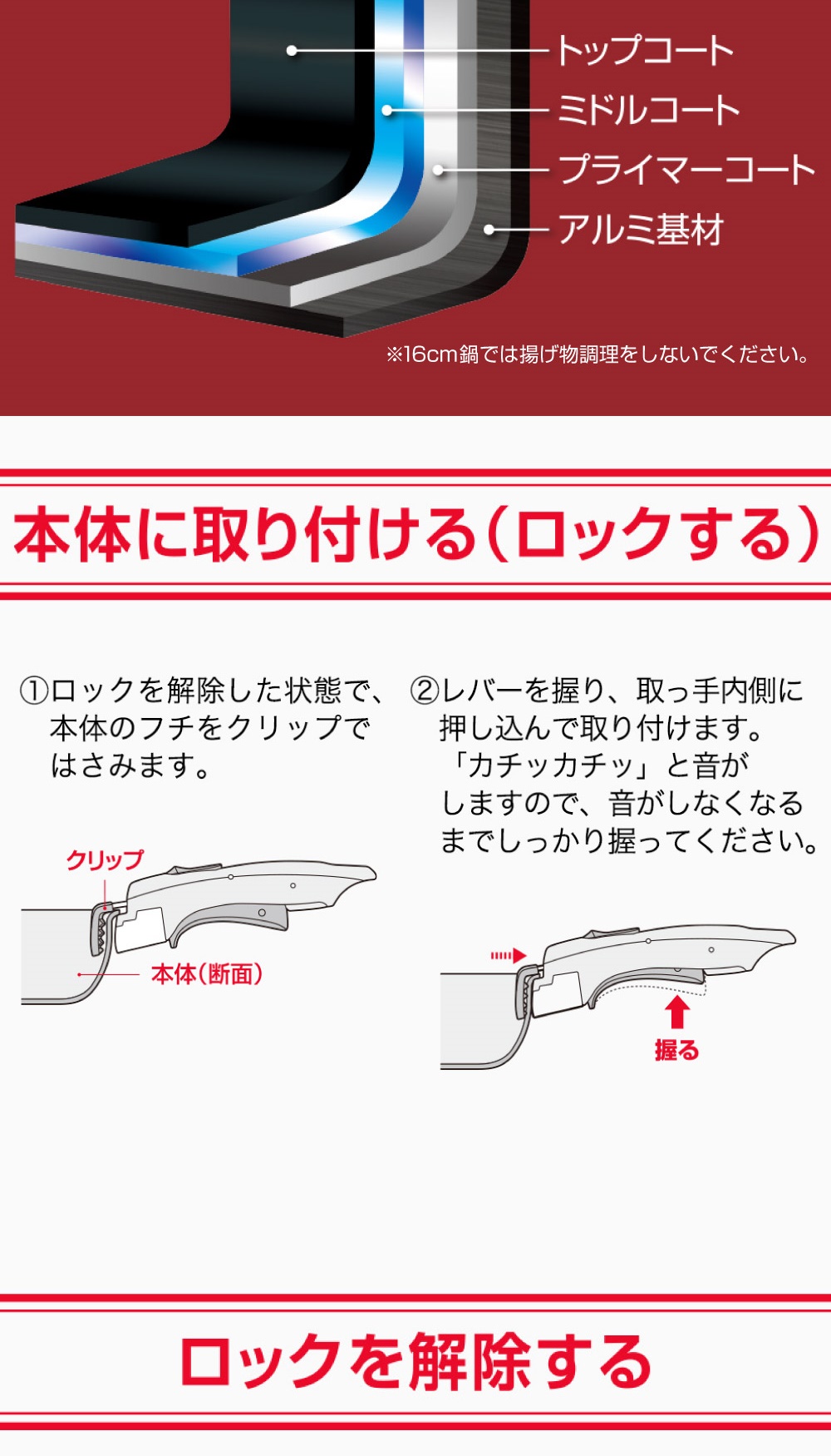 ・取っ手のとれる鍋専用フタ16cm・20cm