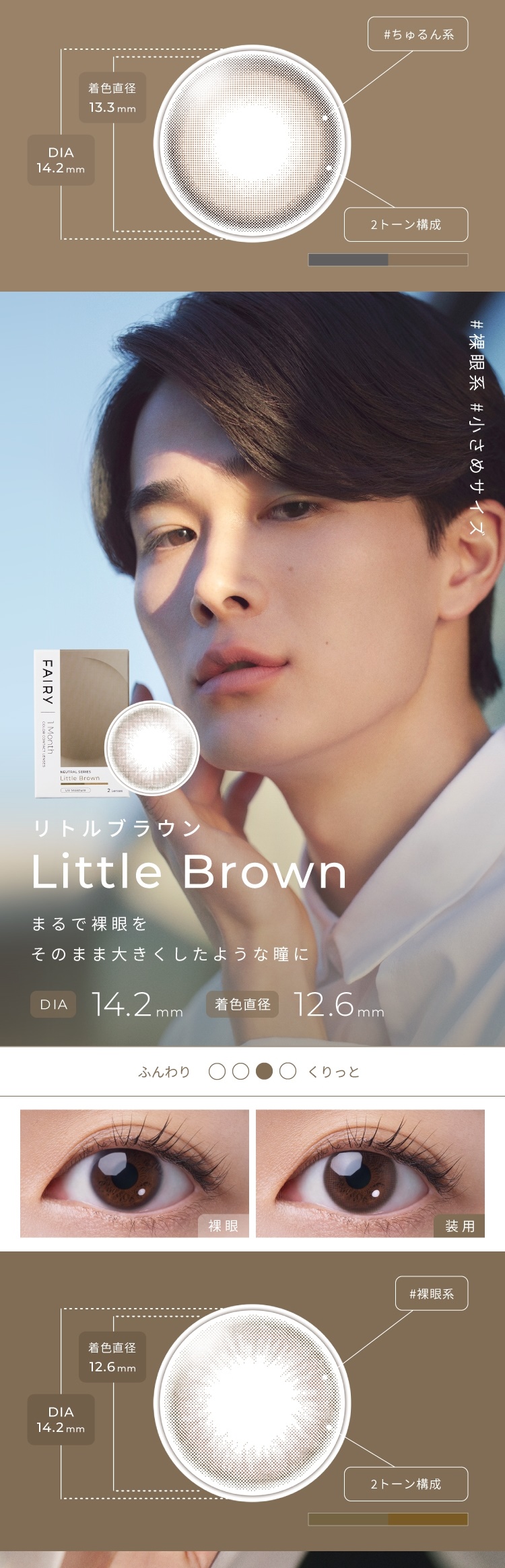 シンシア フェアリーワンマンス ニュートラル リトルブラウン 2枚入 度数-2.00 カラーコンタクトレンズ