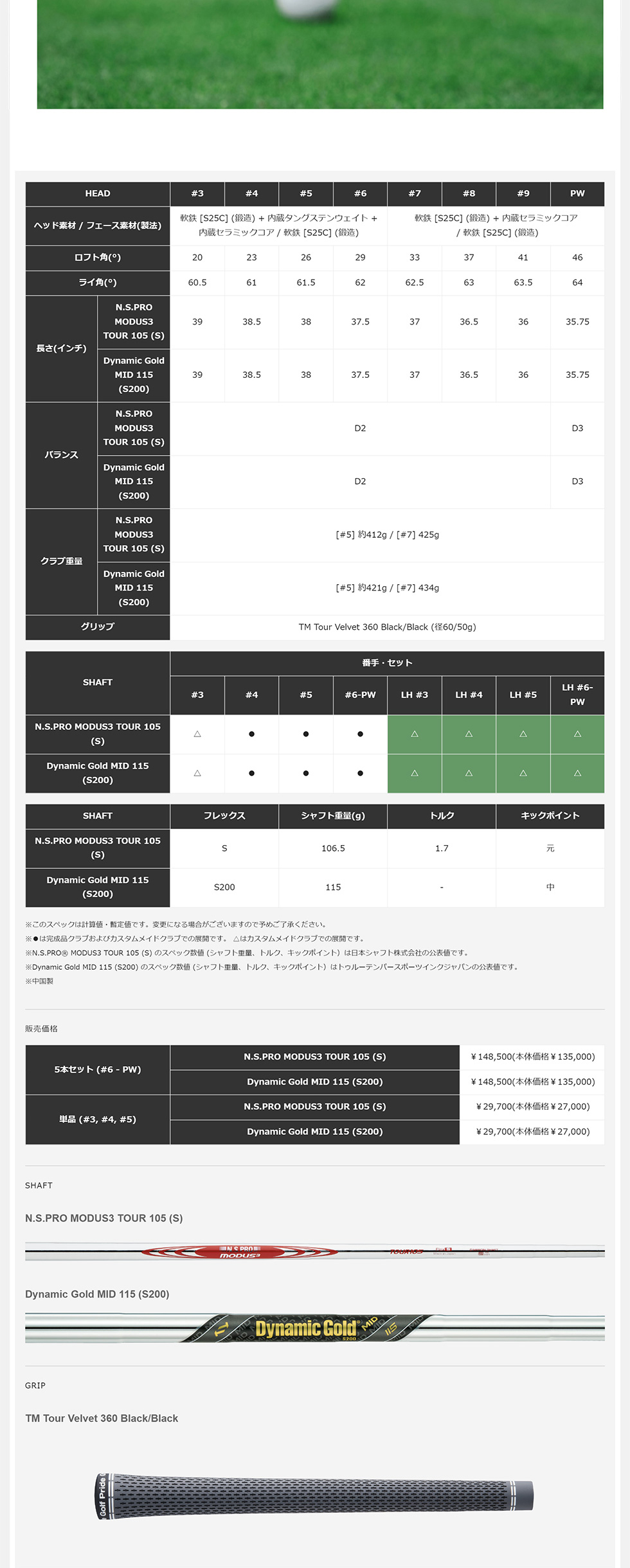 | 長さ | 6I:37.5インチ 7I:37インチ 8I:36.5インチ 9I:36インチ PW:35.75インチ |