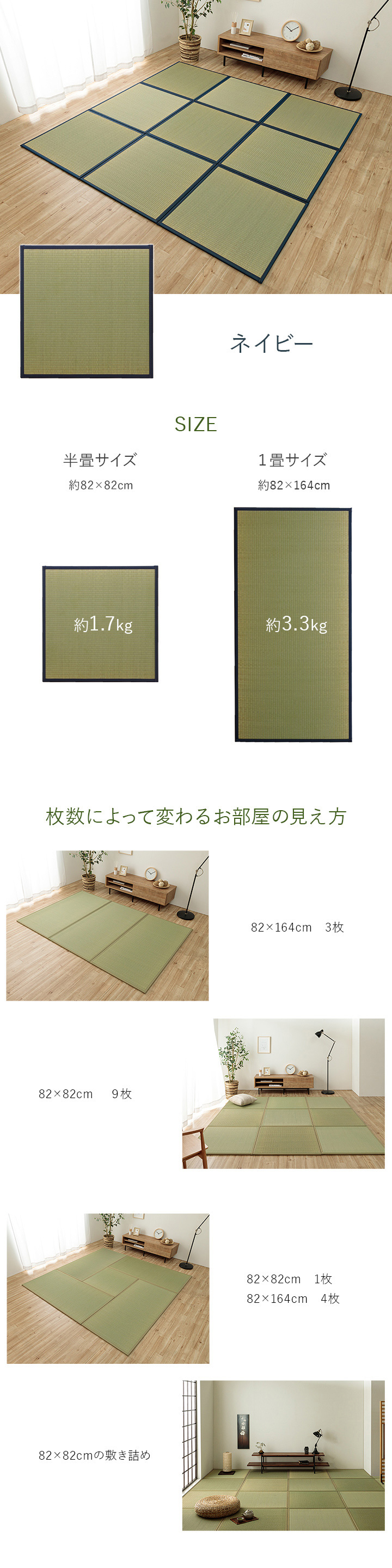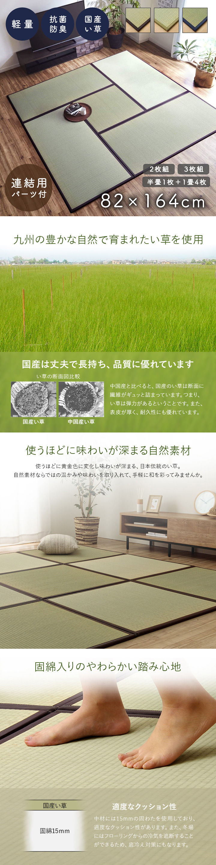 ★ い草には空気の自然浄化作用、湿度の調節作用などがあります。また汚れにくく、使用するうちに黄金色に変化し、味が出ます。