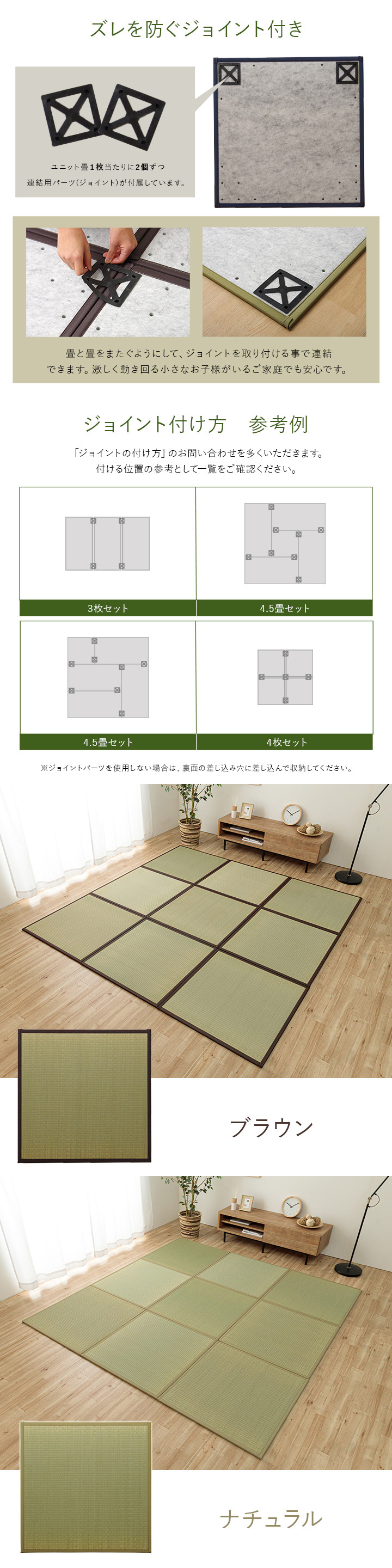 ★ 裏には連結用のジョイントで隣り合った畳がズレないよう固定することが可能です。