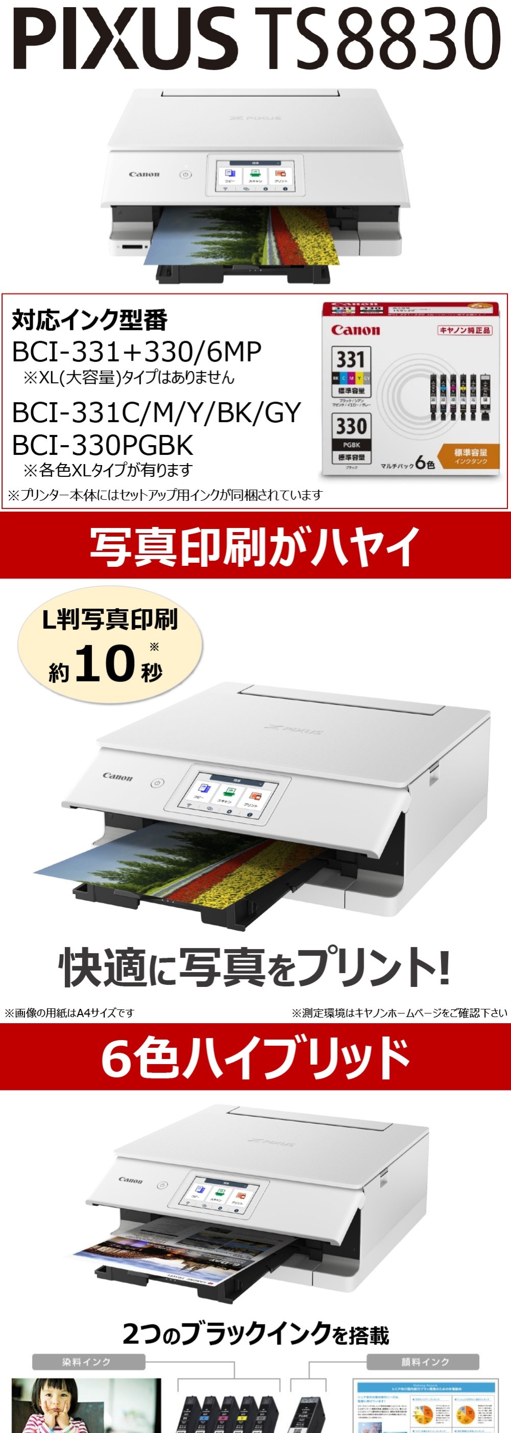 CANON TS8830WH ホワイト PIXUS [A4カラーインクジェット複合機 (コピー/スキャナ)]