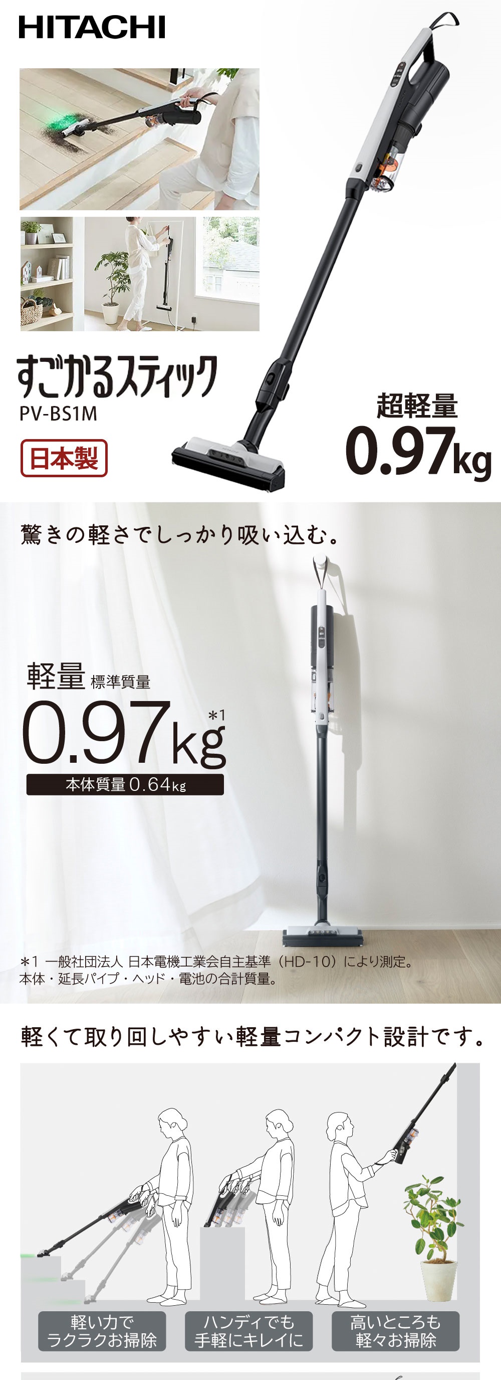 日立 PV-BS1M H ライトグレー すごかるスティック [サイクロン式コードレススティッククリーナー]