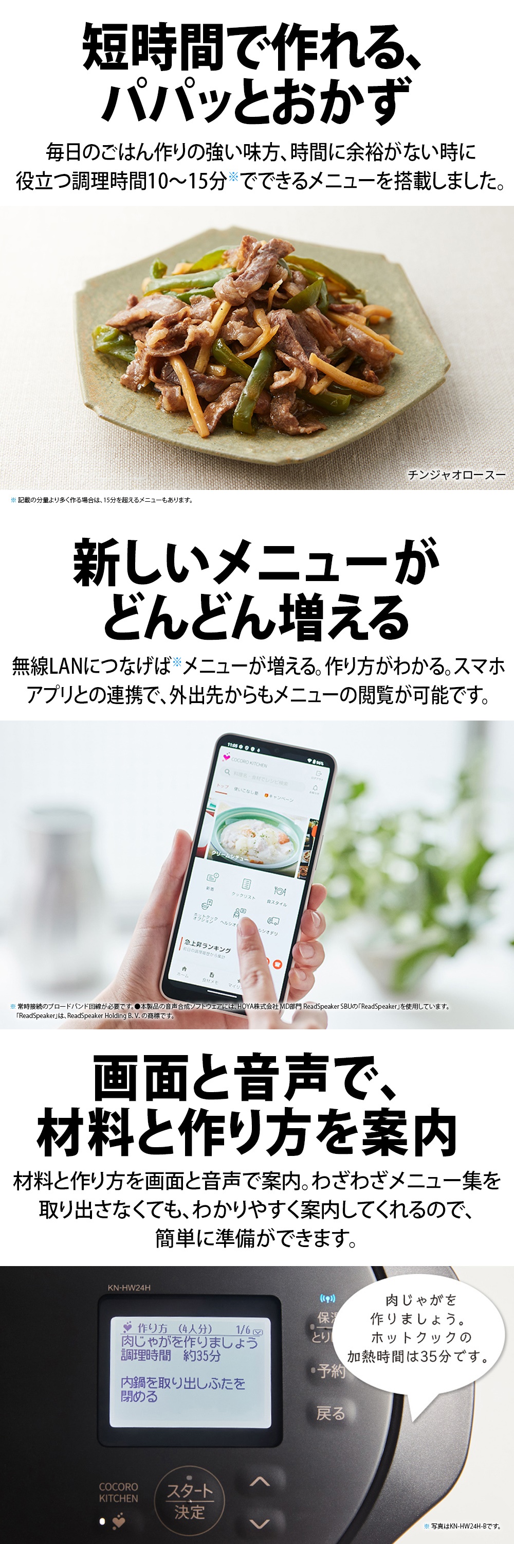 2人分の炒め物や煮物などの調理が約10~15分でできる新カテゴリー「パパッとおかず」30メニューを搭載。「チンジャオロースー」や「えびのチリソース」などの主菜にも対応し、帰宅後に短時間で調理したいときに便利です。