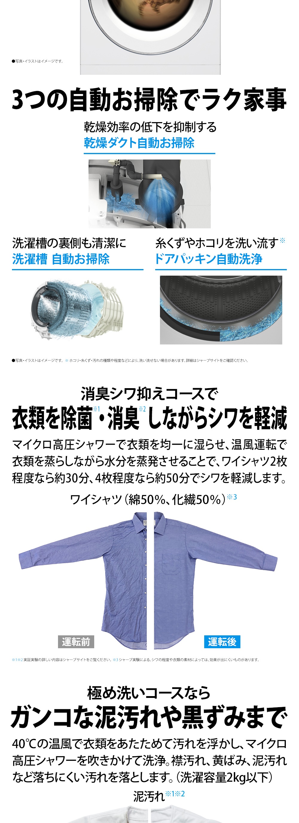 | 電気代(目安) | 洗濯時目安:2.2円(50Hz/60Hz) 洗濯乾燥時目安:50.8円(50Hz/60Hz) |