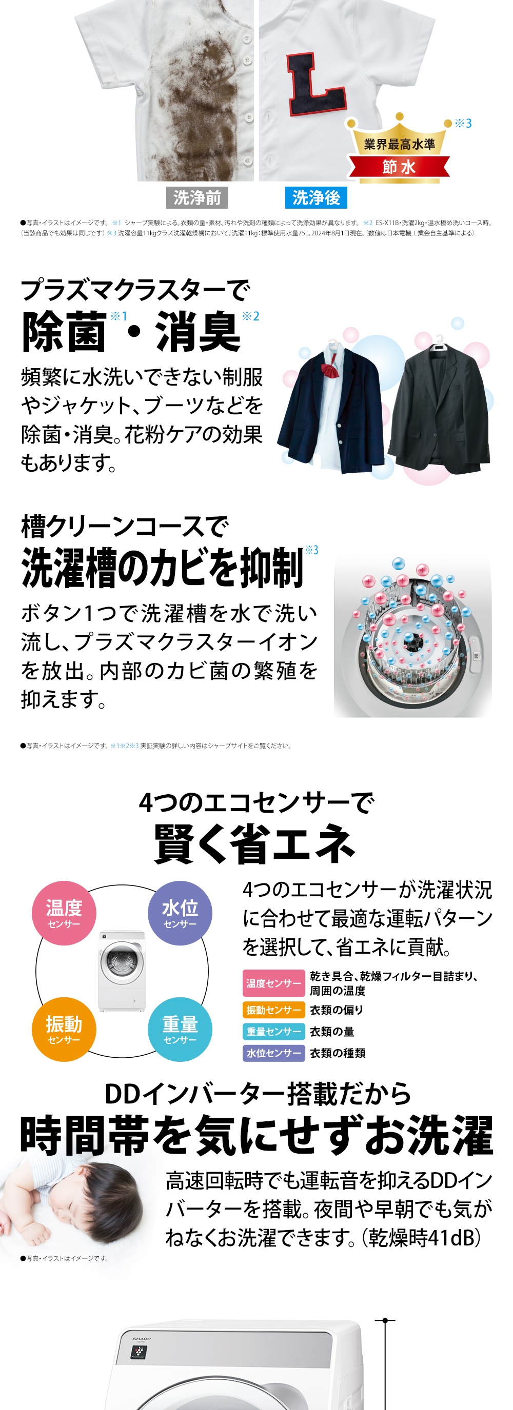 SHARP ES-K11C-WL クリスタルホワイト [ドラム式洗濯乾燥機(洗濯11.0kg / 乾燥6.0kg) 左開き]