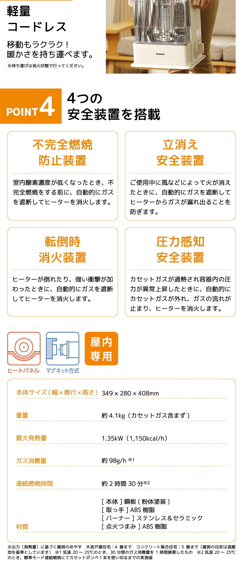 ★ 電源を使用しないので万一の非常時も安心。灯油禁止マンションにも対応。