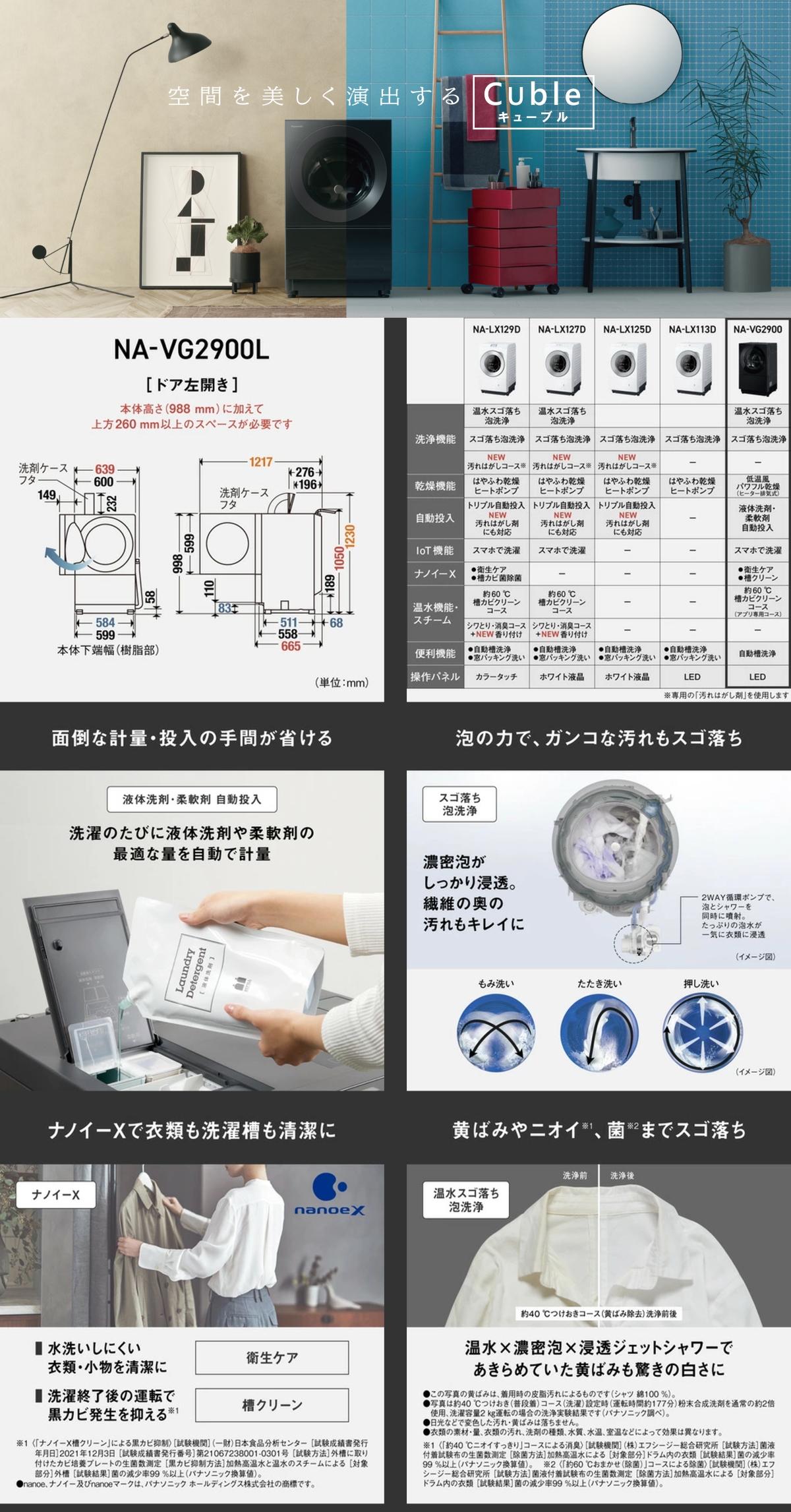 PANASONIC NA-VG2900L-K スモーキーブラック Cuble [ドラム式洗濯乾燥機 (洗濯機10kg/乾燥機5kg) 左開き]