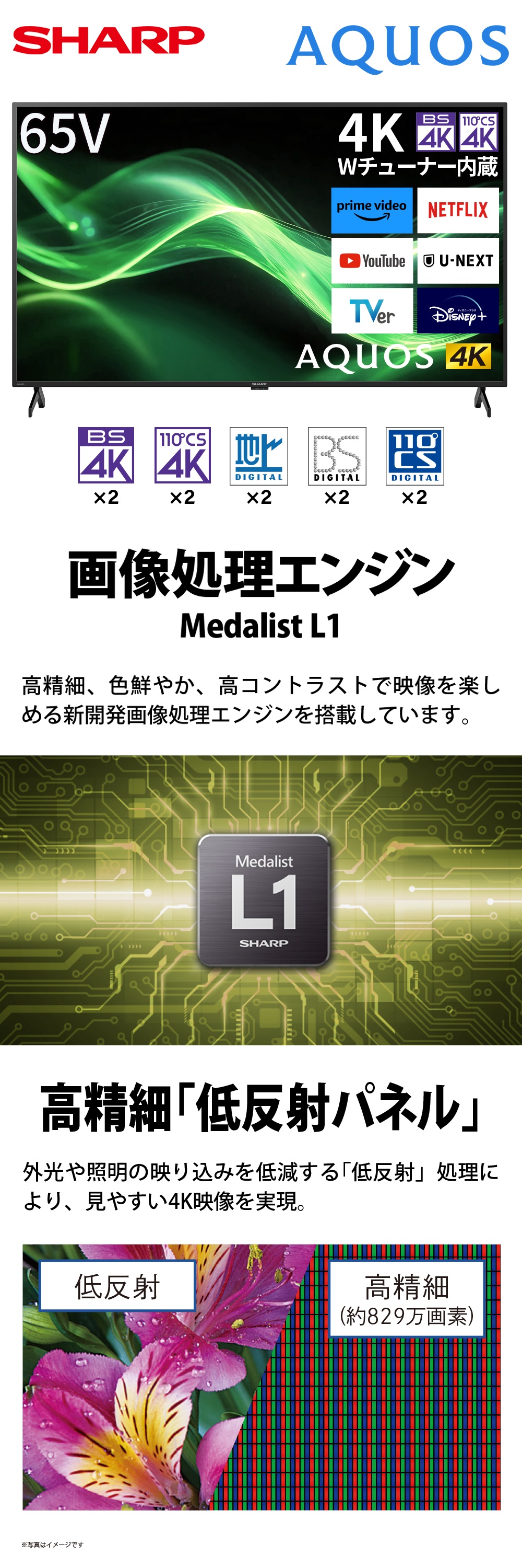 SHARP 4T-C65GJ2 AQUOS GJ2ライン [65型 地上・BS・110度CSデジタル 4Kチューナー内蔵 液晶テレビ]