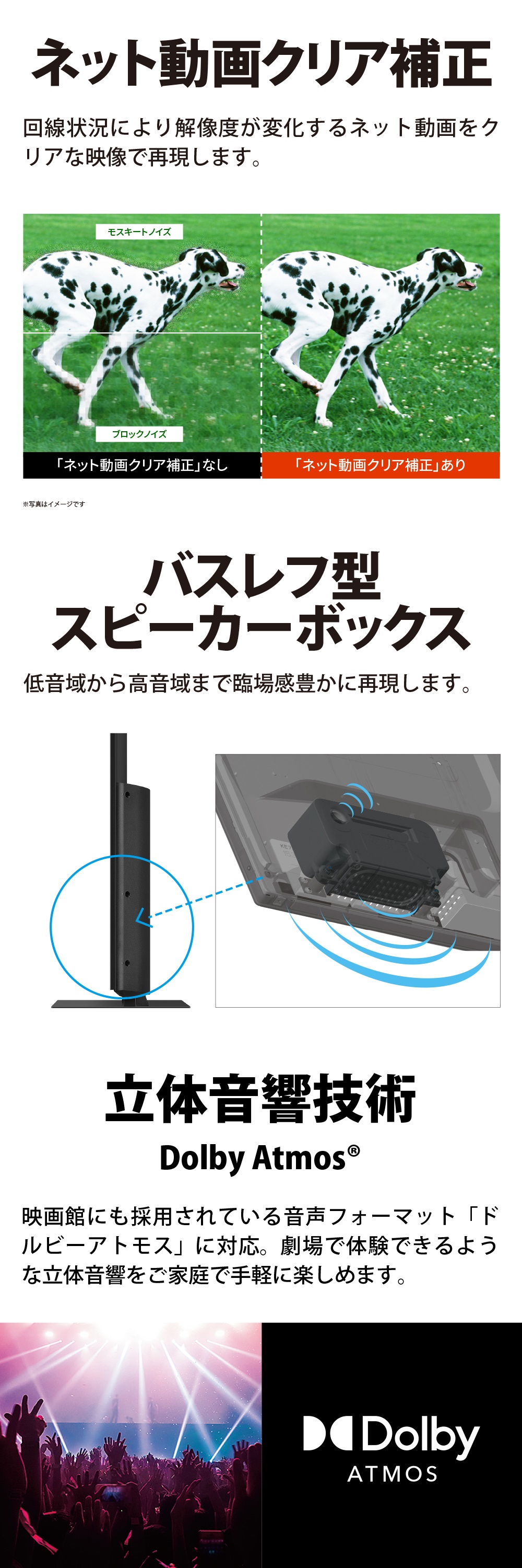 映画館にも採用されている音声フォーマット「ドルビーアトモス」に対応。
