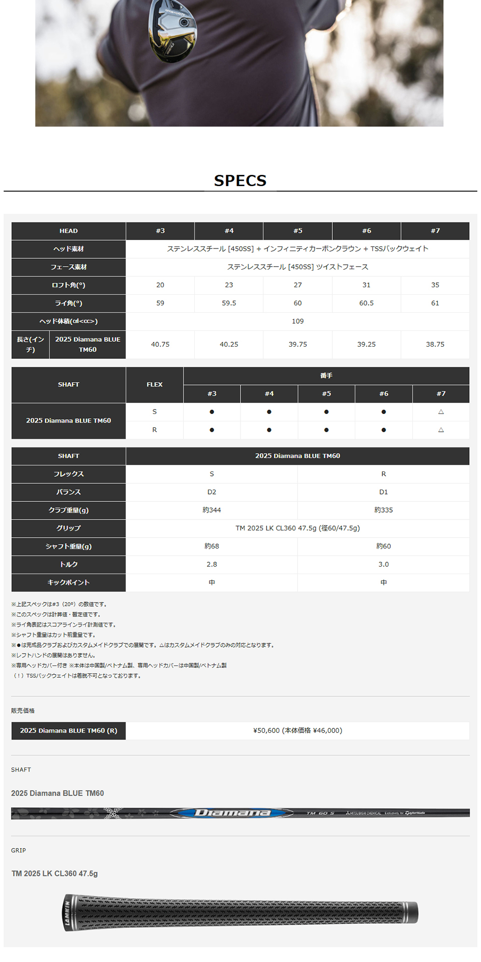 | シャフト名 | 2025 Diamana BLUE TM60 |