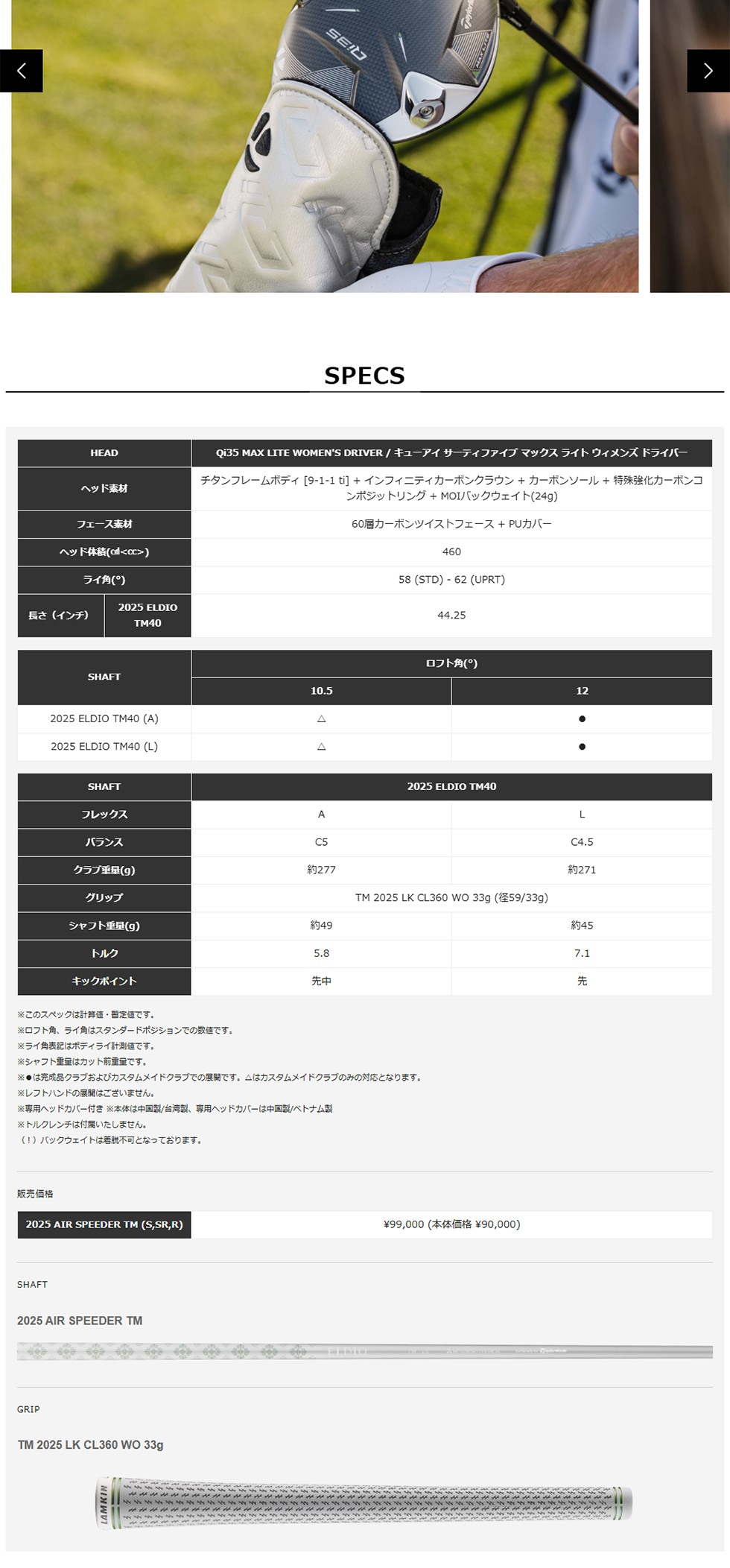 【日本正規品】 テーラーメイド Qi35 MAX LITE ウィメンズ ドライバー 2025年モデル Mitsubishi ELDIO TM40-Lフレックス 12.0°