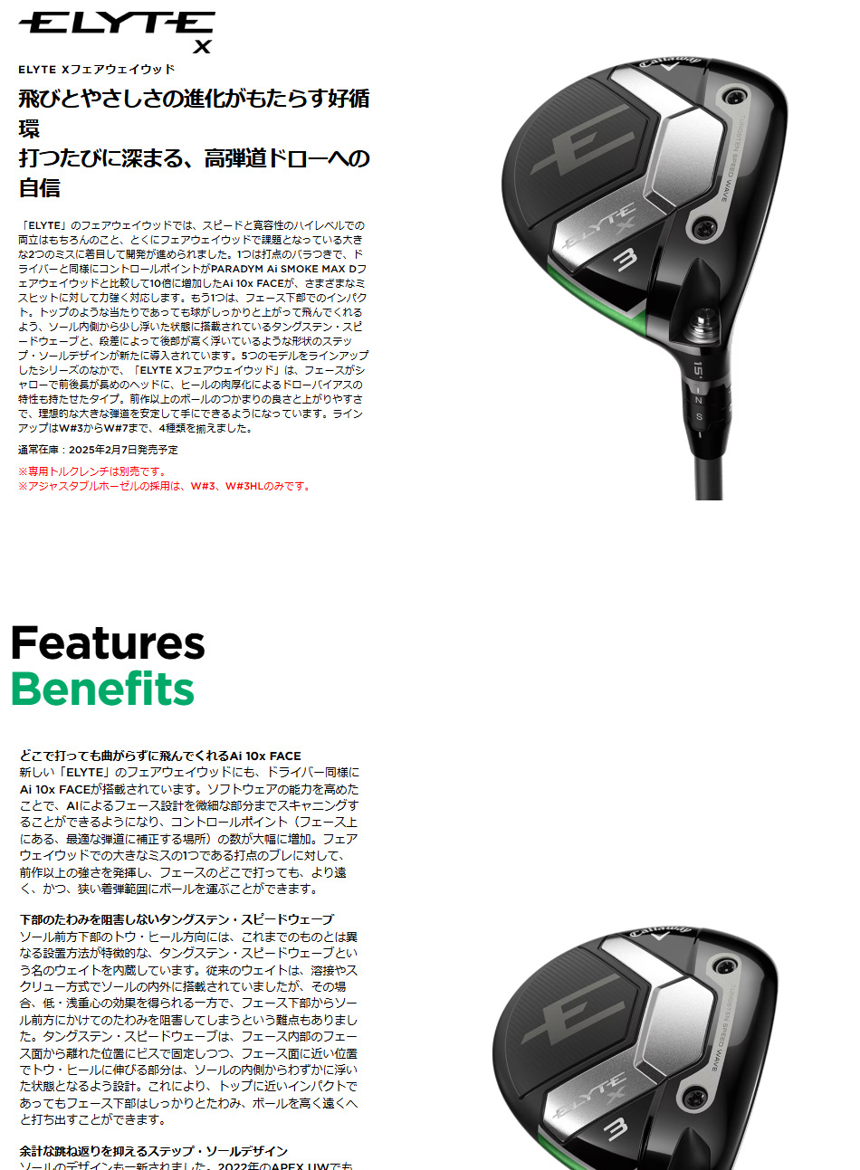 【日本正規品】 キャロウェイ ELYTE(エリート) フェアウェイウッド 2025年モデル V...