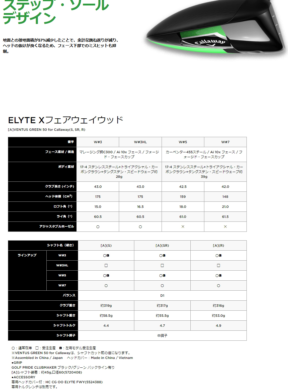 【日本正規品】 キャロウェイ ELYTE X(エリート エックス) フェアウェイウッド 2025年モデル VENTUS GREEN 50 for Callaway カーボンシャフト(SR) #3