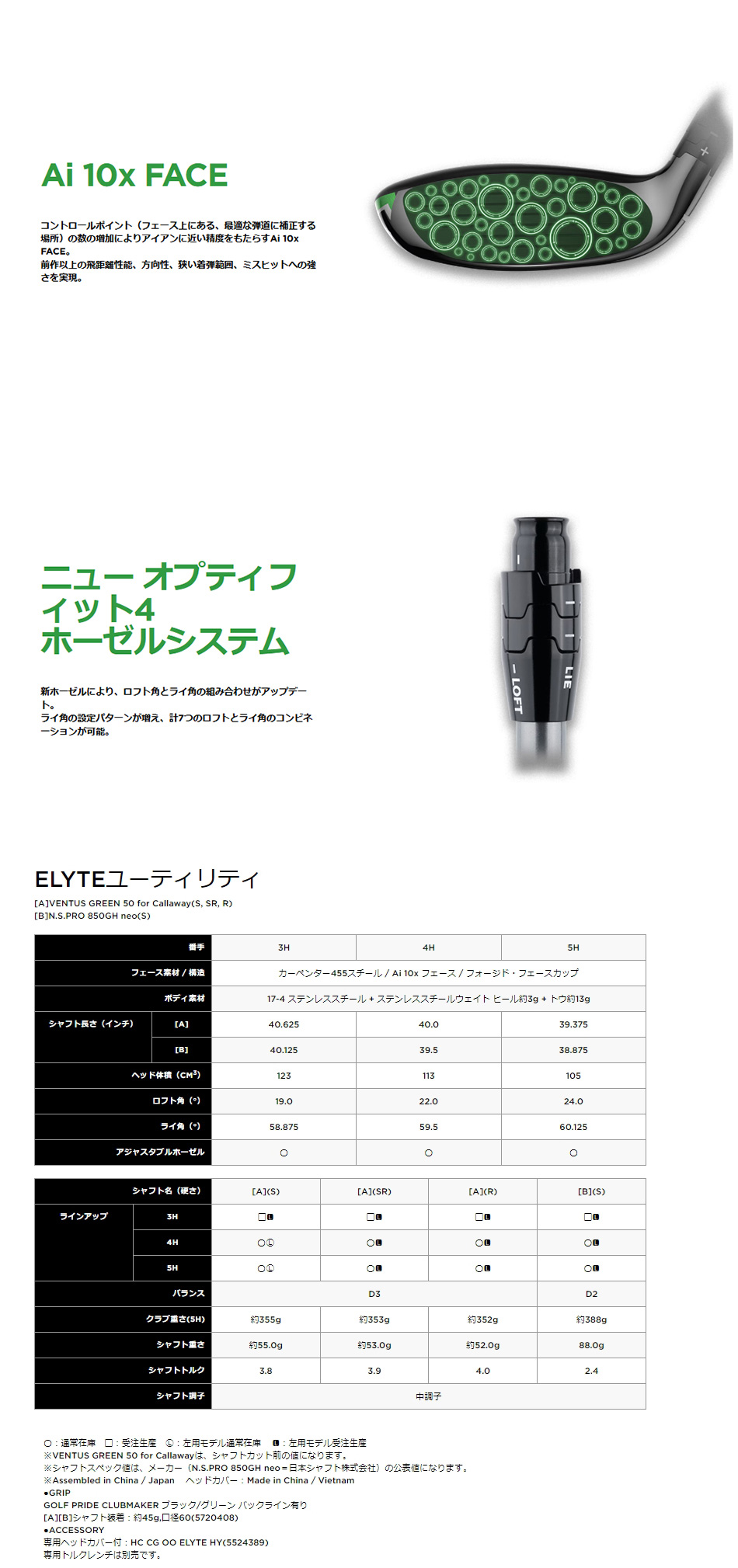 【日本正規品】 キャロウェイ ELYTE(エリート) ユーティリティ 2025年モデル VENTUS GREEN 50 for Callaway カーボンシャフト(S) 4H