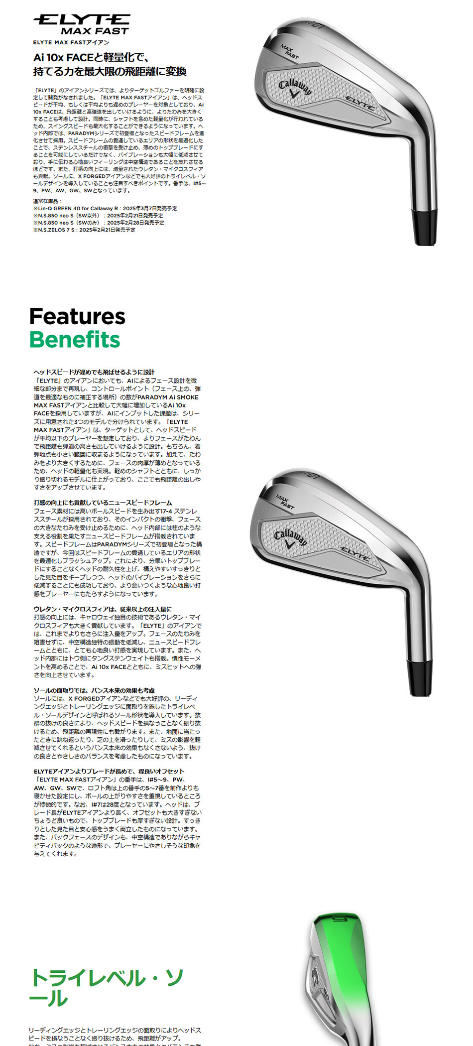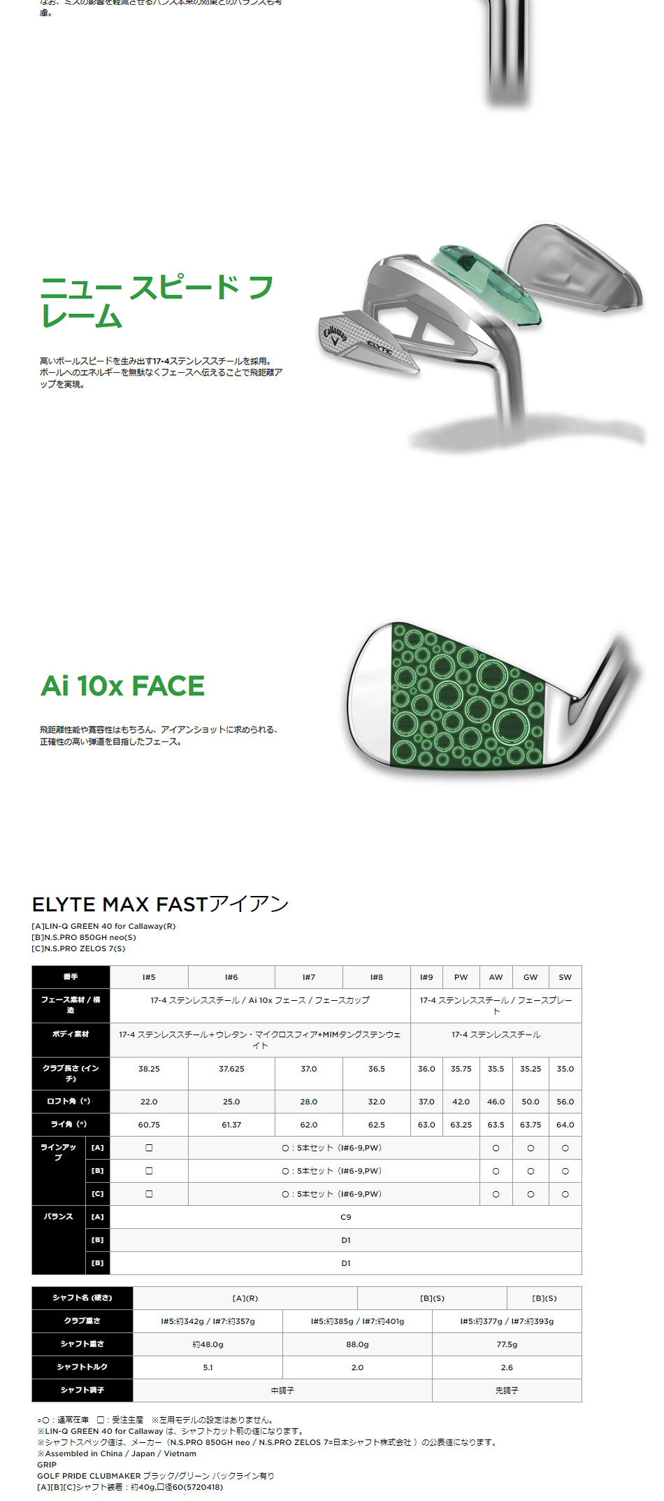 【日本正規品】 キャロウェイ ELYTE MAX FAST(エリート マックスファスト) アイアンセット5本組(#6~Pw) 2025年モデル N.S. PRO ZELOS 7スチールシャフト (S)