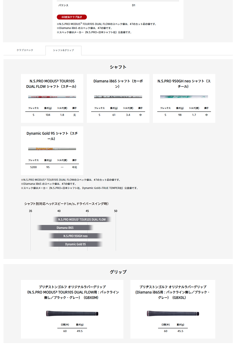 | 長さ | 5I:38.5インチ 6I:38インチ 7I:37.5インチ 8I:37インチ 9I:36.5インチ PW:36インチ |
