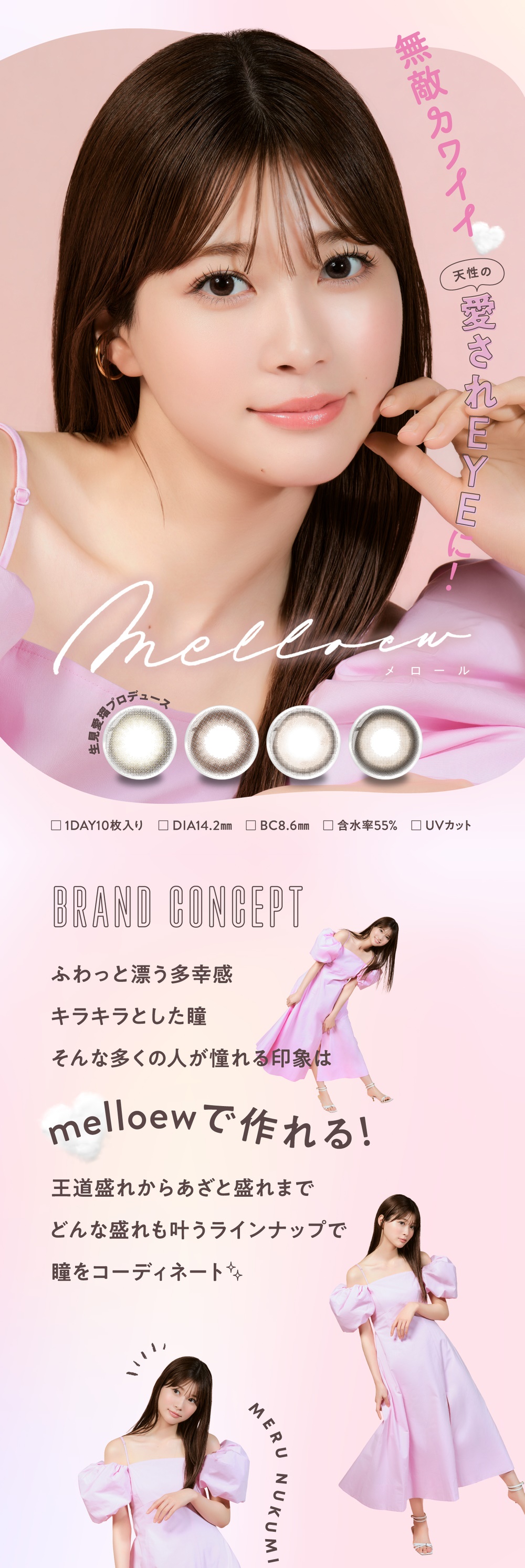 ふわっと漂う多幸感キラキラとした瞳そんな多くの人が憧れる印象はmelloewで作れる王道盛れからあざと盛れまでどんな盛れも叶うラインナップで瞳をコーディネート