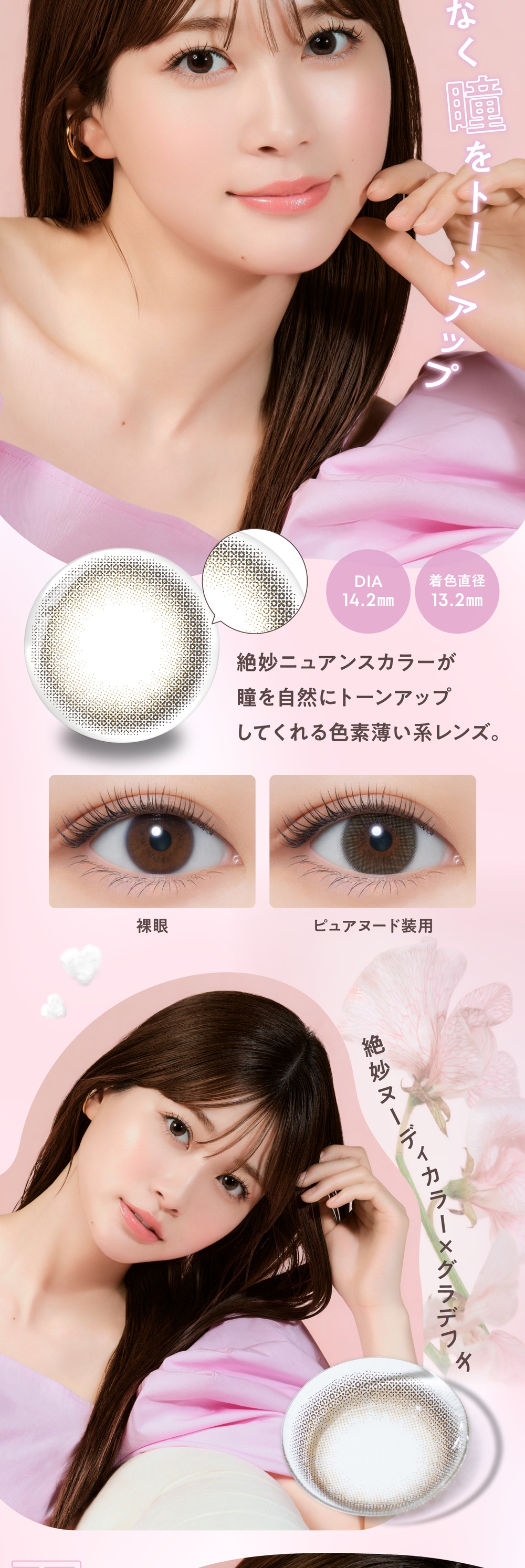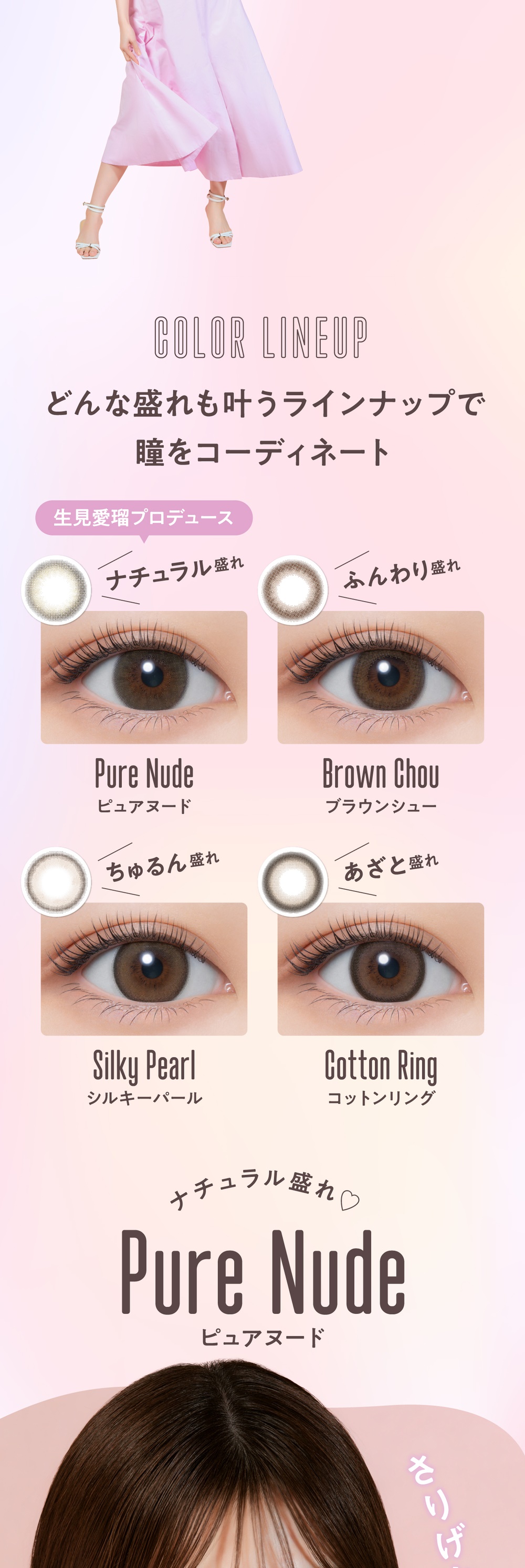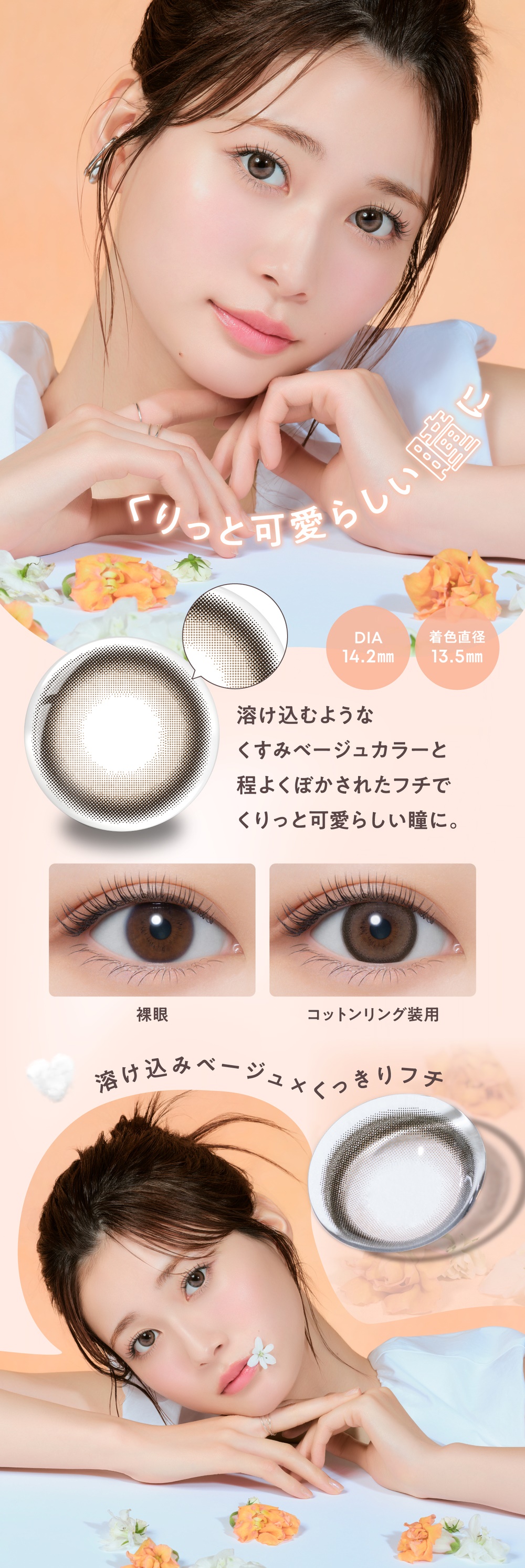 溶け込むようなくすみベージュカラーと程よくぼかされたフチでくりっと可愛らしい瞳に。