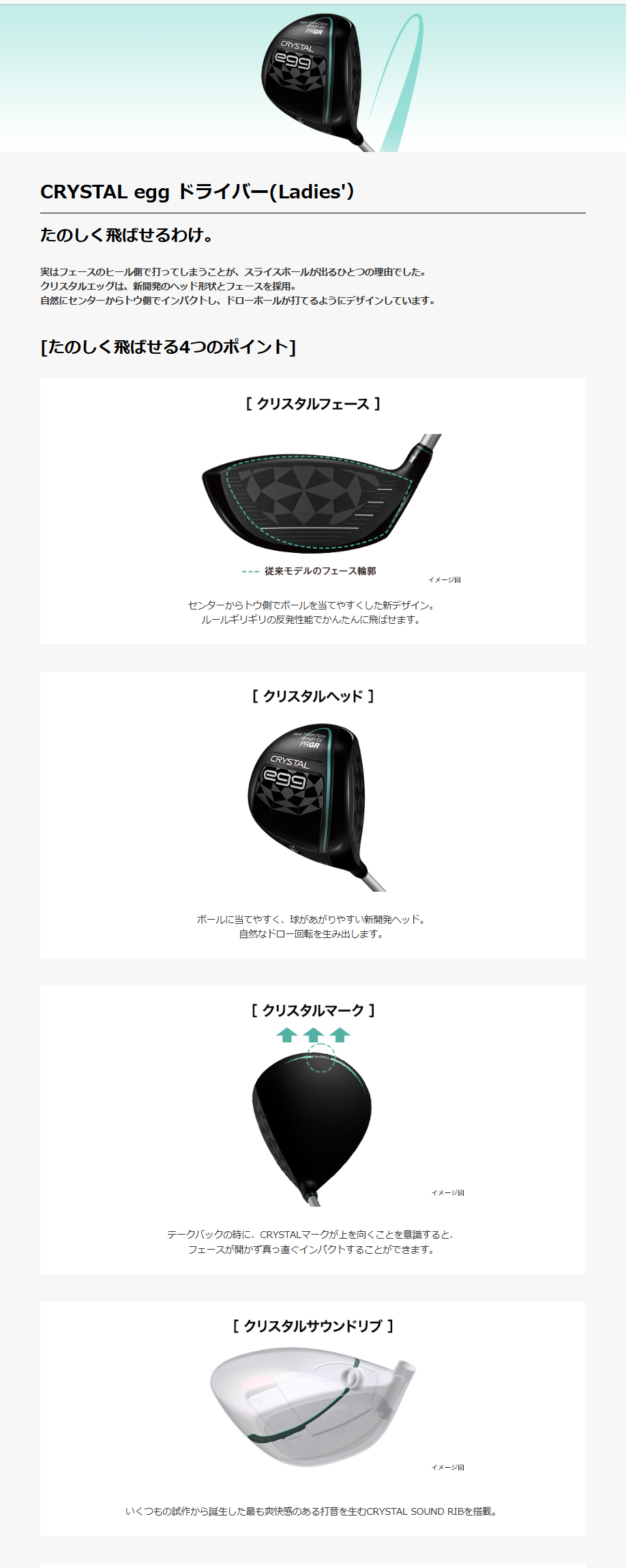 クリスタルエッグは、新開発のヘッド形状とフェースを採用。