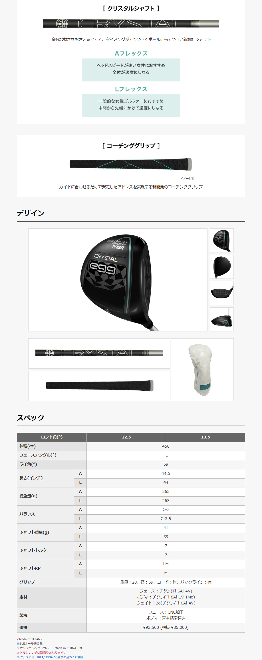 【日本正規品】 PRGR CRYSTAL EGG(クリスタルエッグ) ドライバー 2025年モデル PRGR オリジナルカーボンシャフト L 13.5