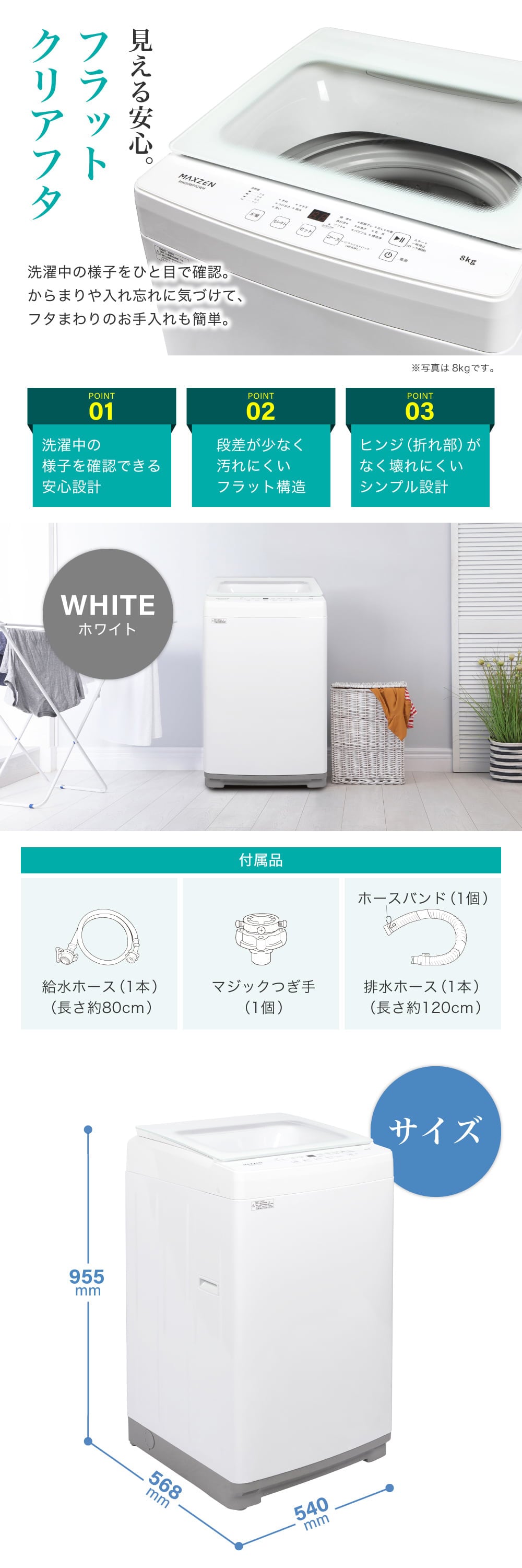 MAXZEN MW80WP02WH ホワイト [全自動洗濯機 (8.0kg)]