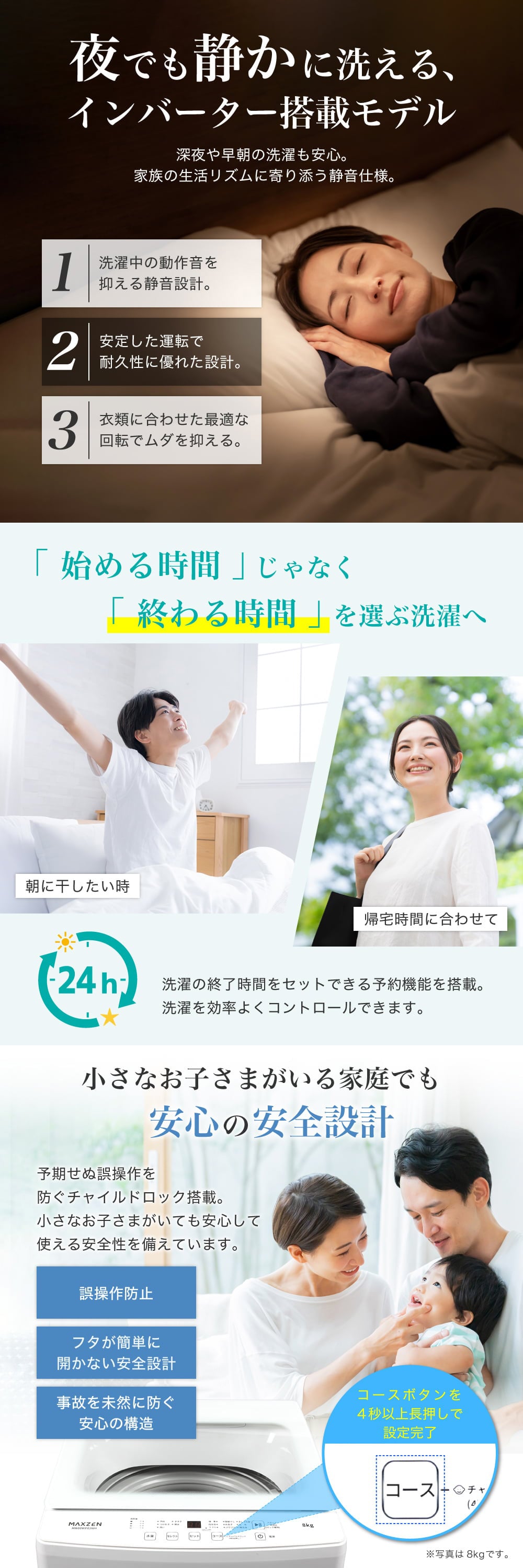 ★ 夜でも静かに洗えるインバーター搭載モデル