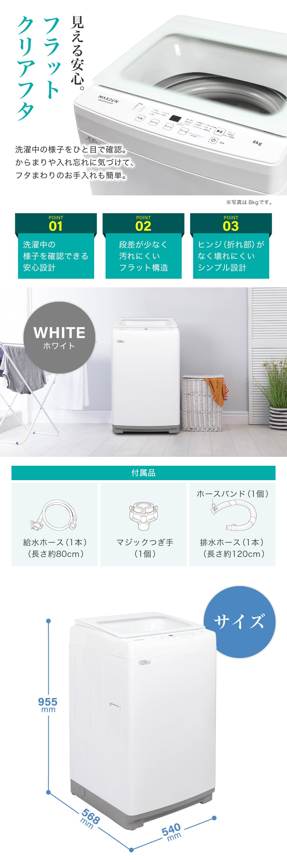 MAXZEN MW100WP02WH ホワイト [全自動洗濯機 (10.0kg)]