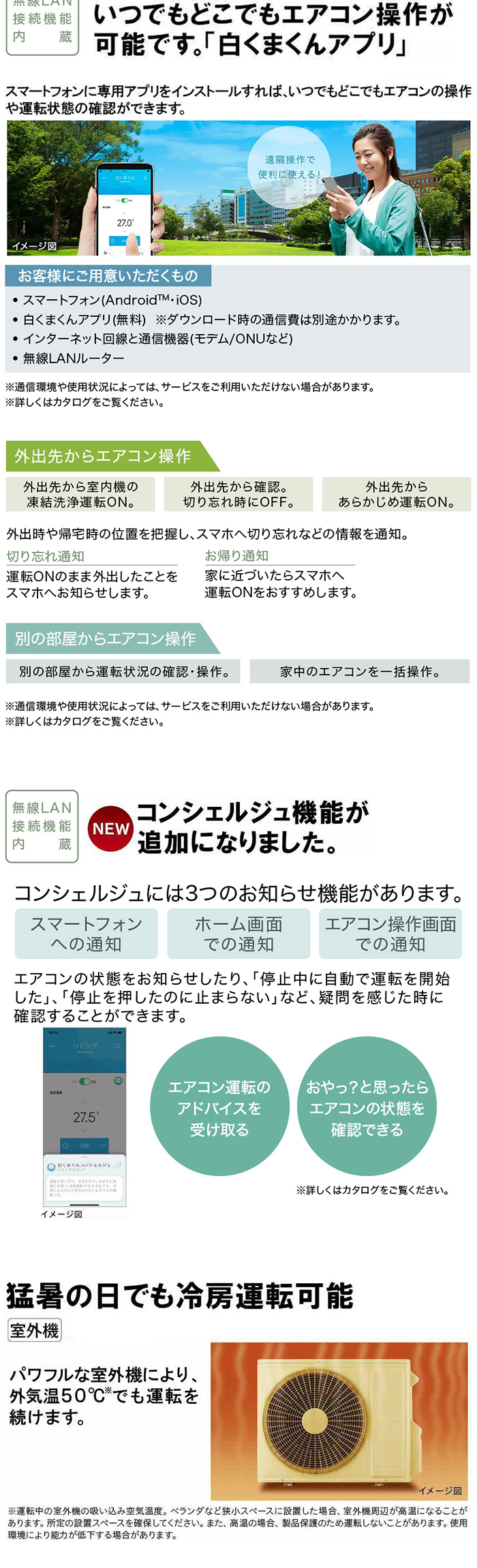 室内機・室外機「凍結洗浄」・「ファンお掃除ロボ」・「カビバスター」搭載ハイグレードモデル。