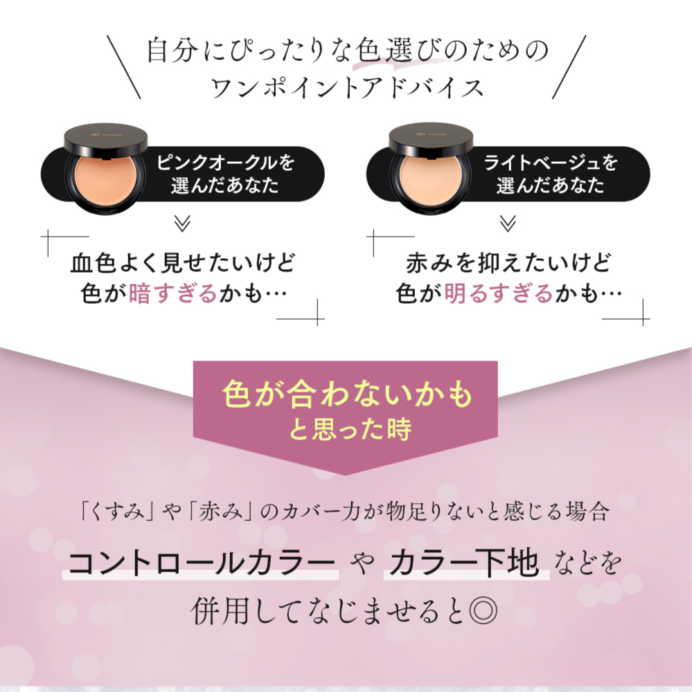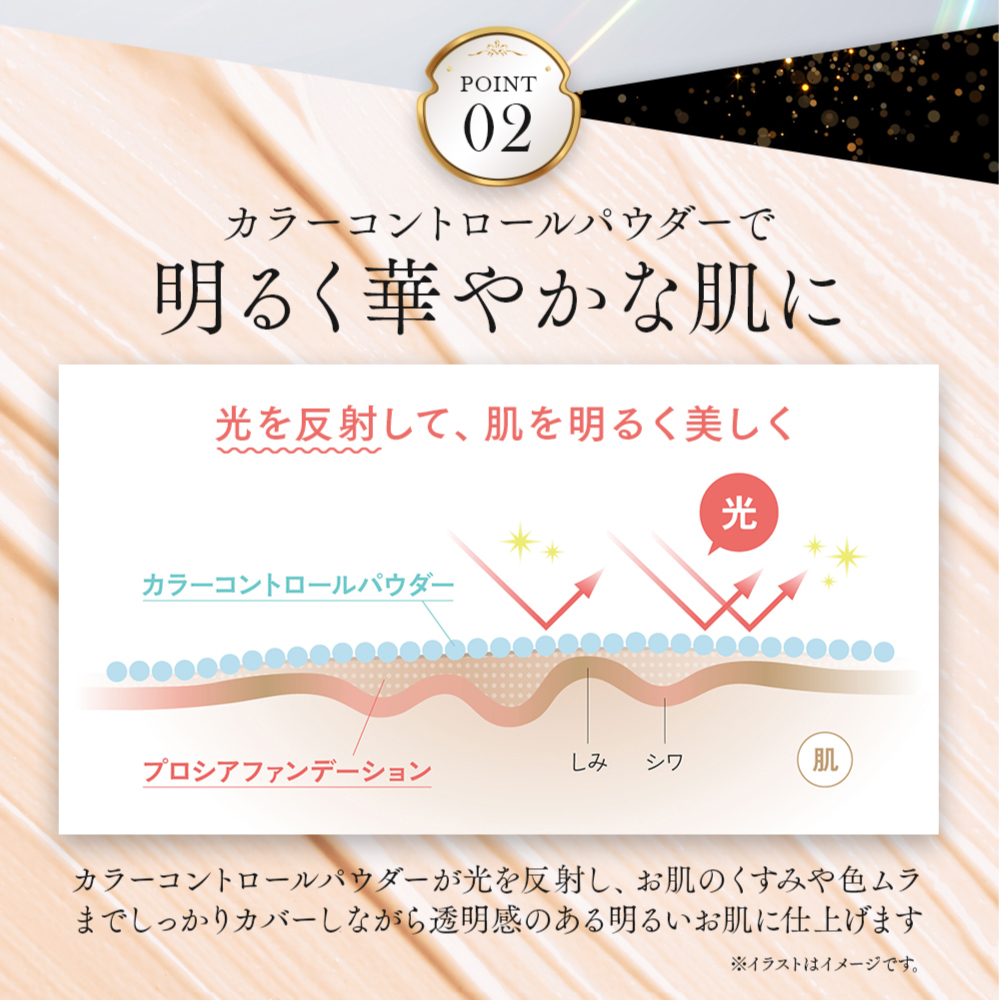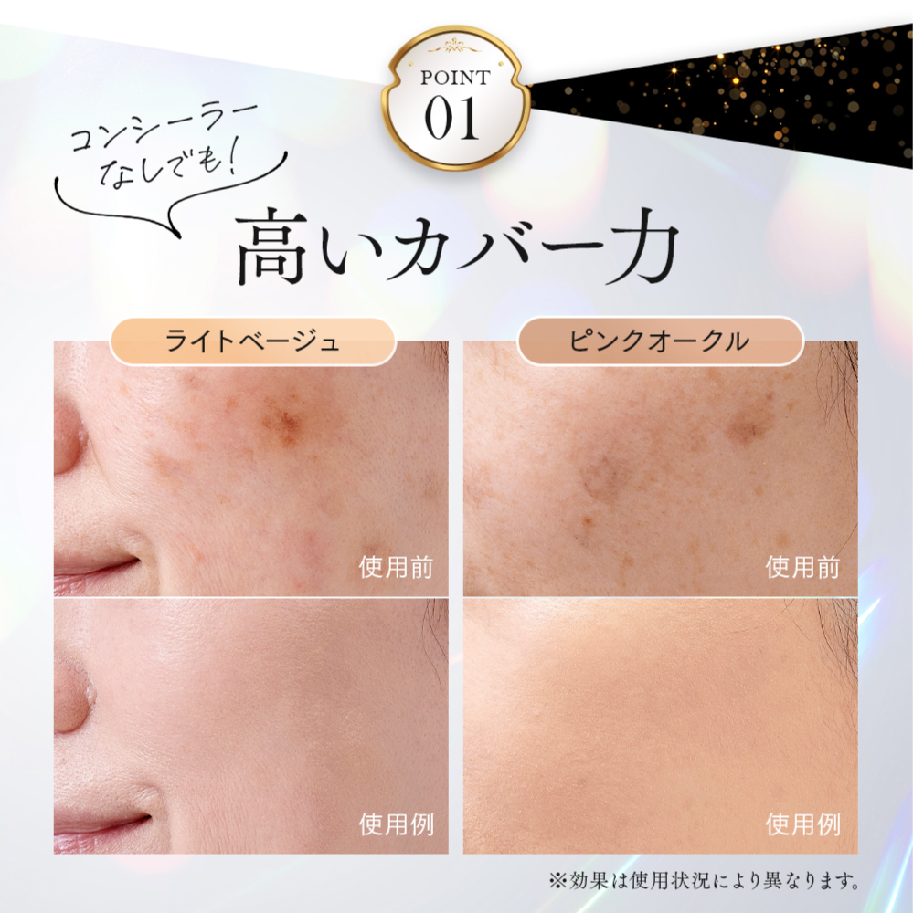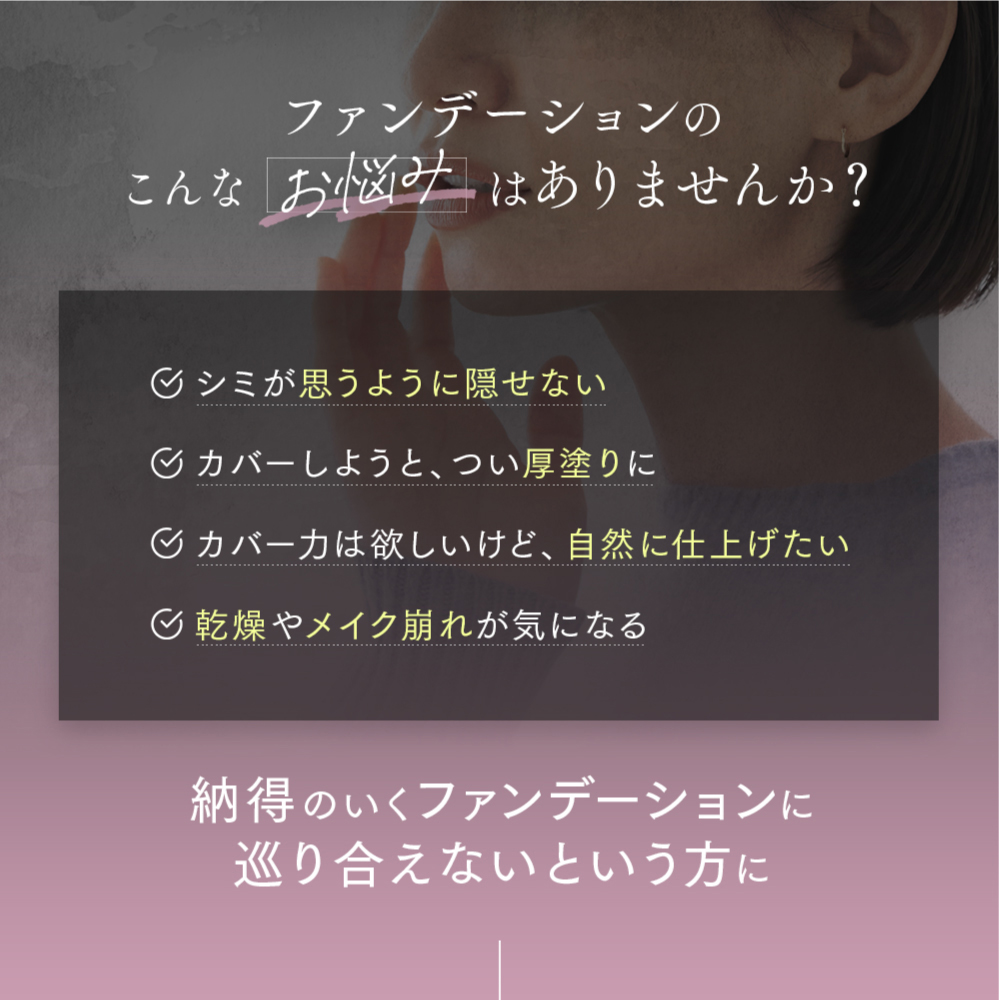 優れたカバー力で気になるシミやくすみを目立たなくして、きれいな肌を演出します。