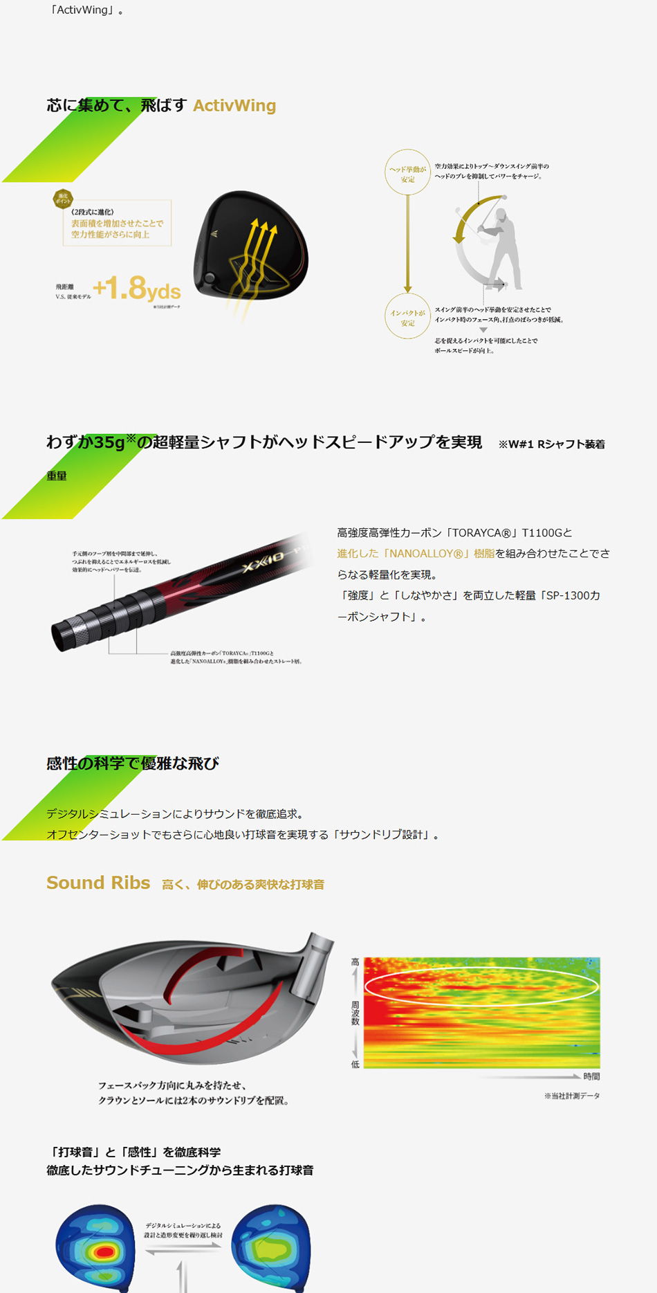 オフセンターショットでもさらに心地良い打球音を実現する「サウンドリブ設計」。