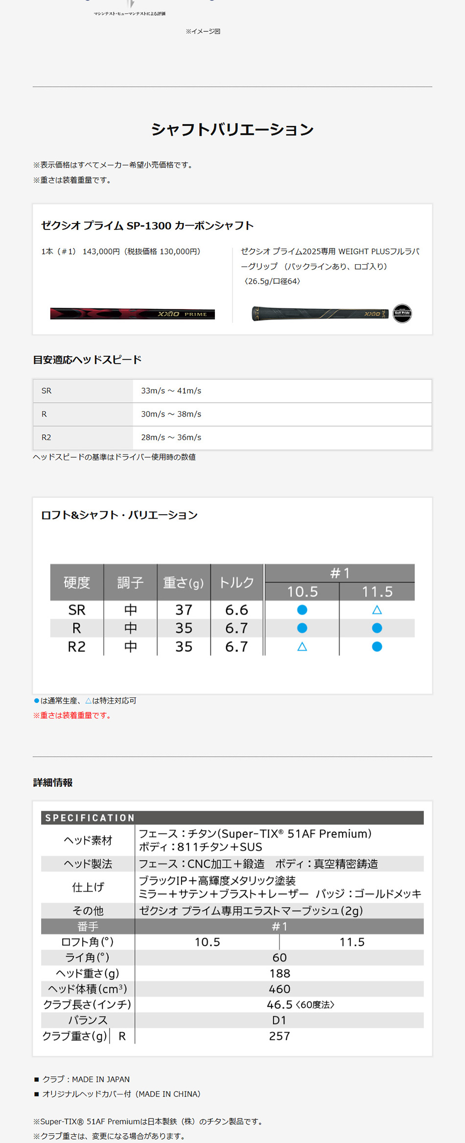 | ヘッド構造 | ボディ:811チタン+SUS(真空精密鋳造) フェース:チタン Super-TIX 51AF Premium(CNC加工+鍛造) |