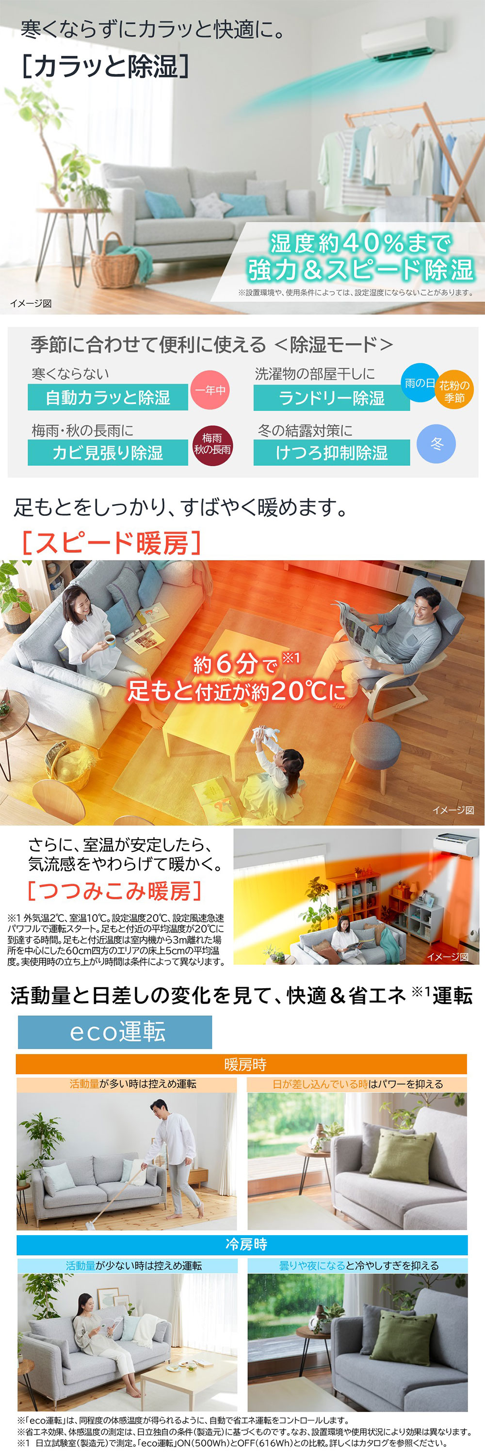 日立エアコンは、性能と機能で快適&省エネ。